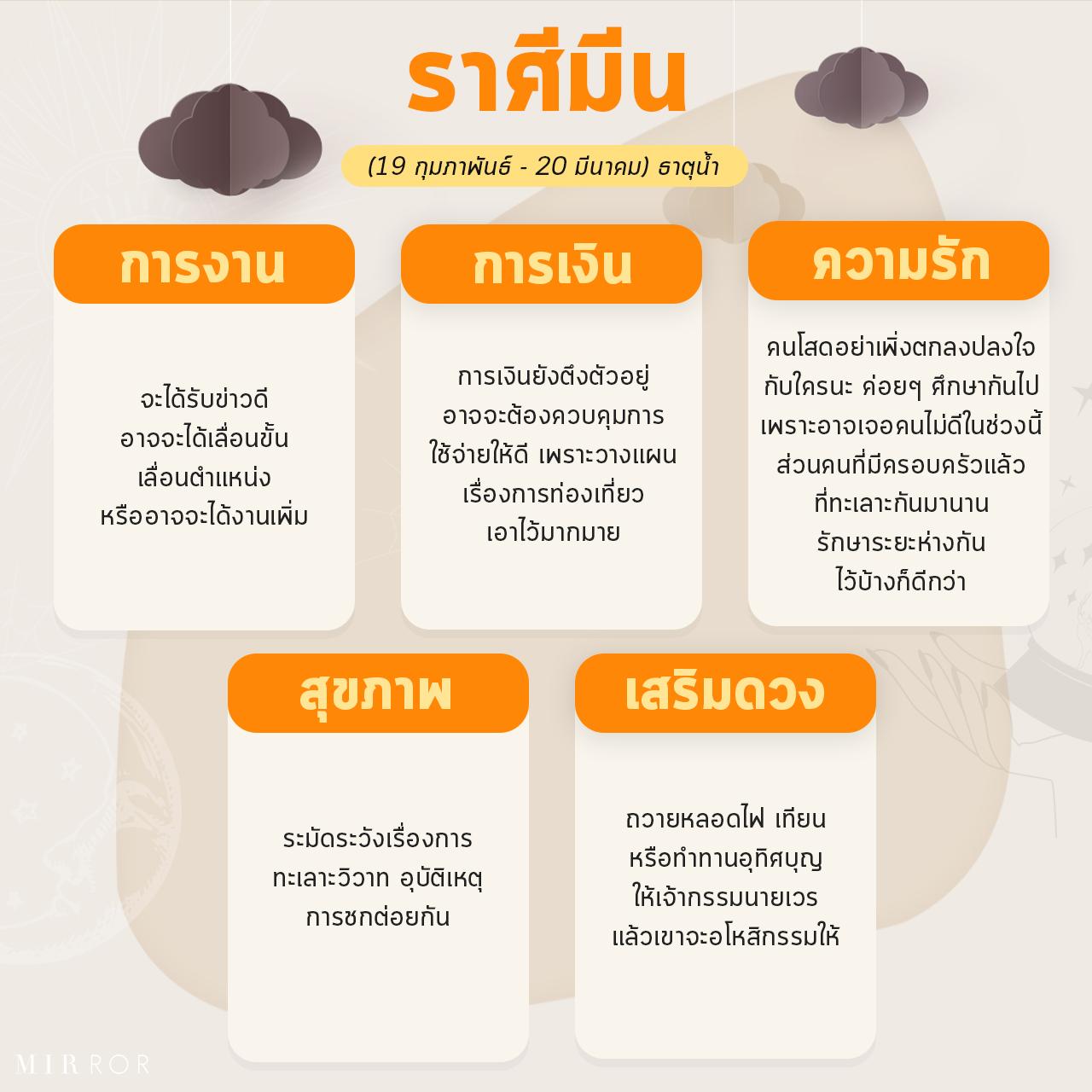 ราศีมีน (19 กุมภาพันธ์ - 20 มีนาคม) ธาตุน้ำ