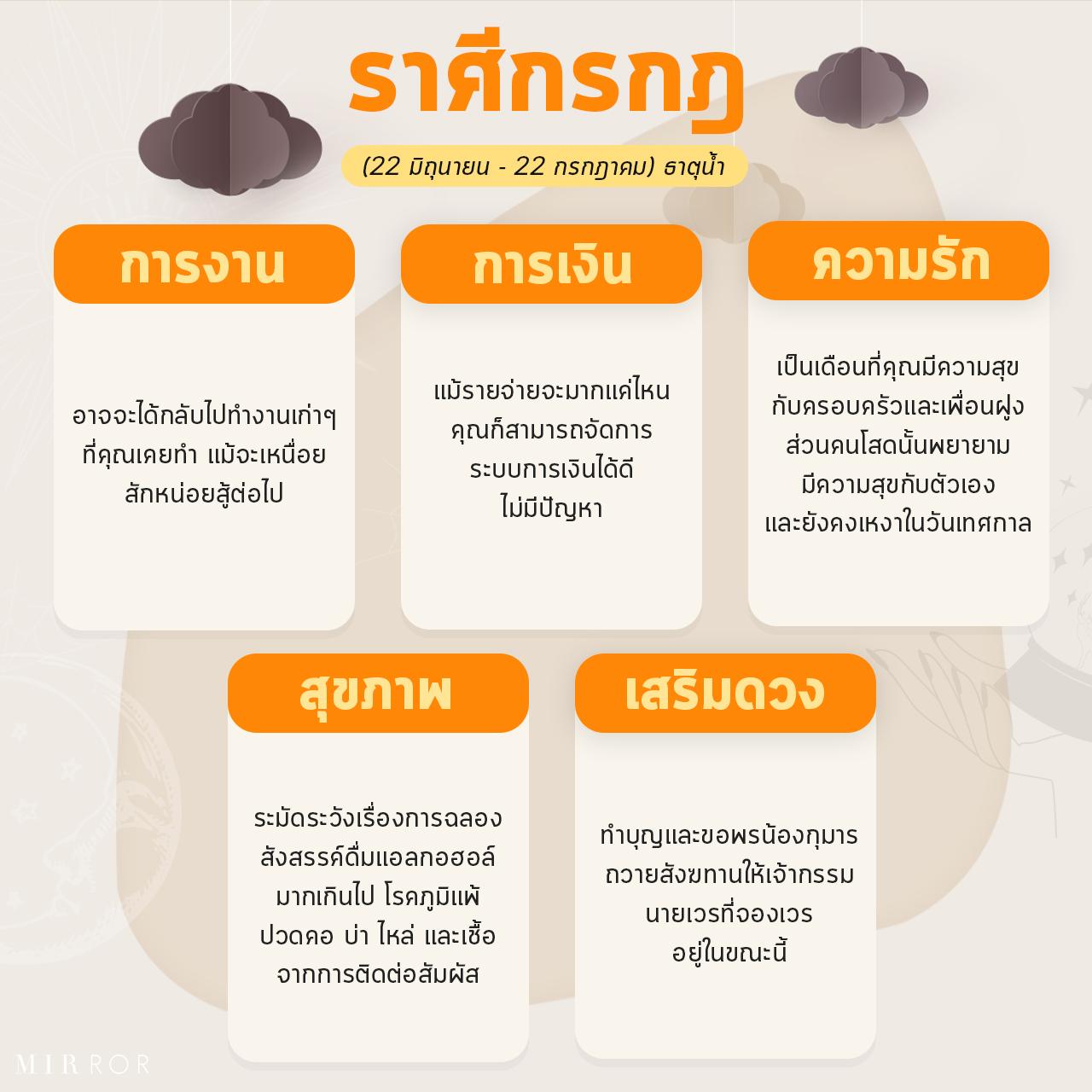 ราศีกรกฎ (22 มิถุนายน - 22 กรกฎาคม) ธาตุน้ำ