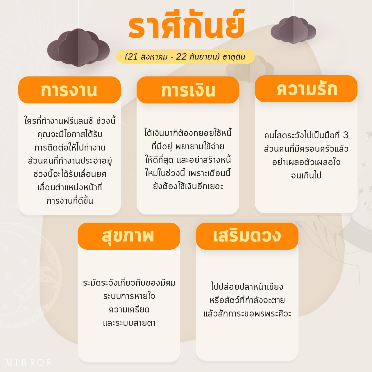 ราศีกันย์ (21 สิงหาคม - 22 กันยายน) ธาตุดิน
