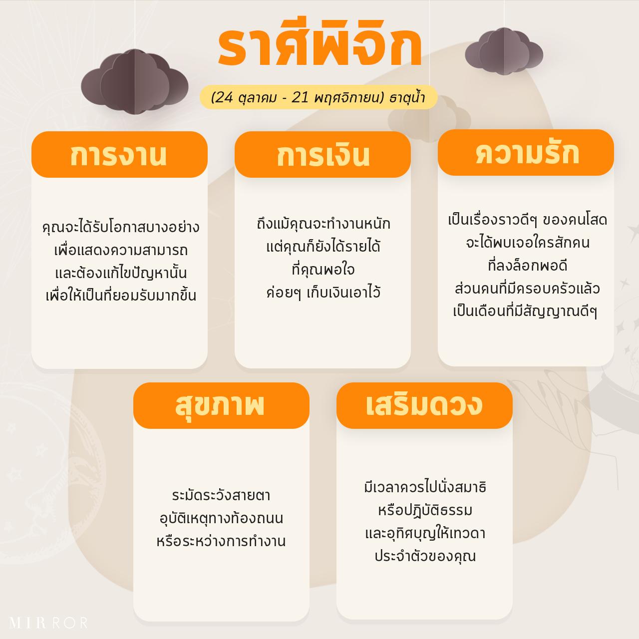 ราศีพิจิก (24 ตุลาคม - 21 พฤศจิกายน) ธาตุน้ำ