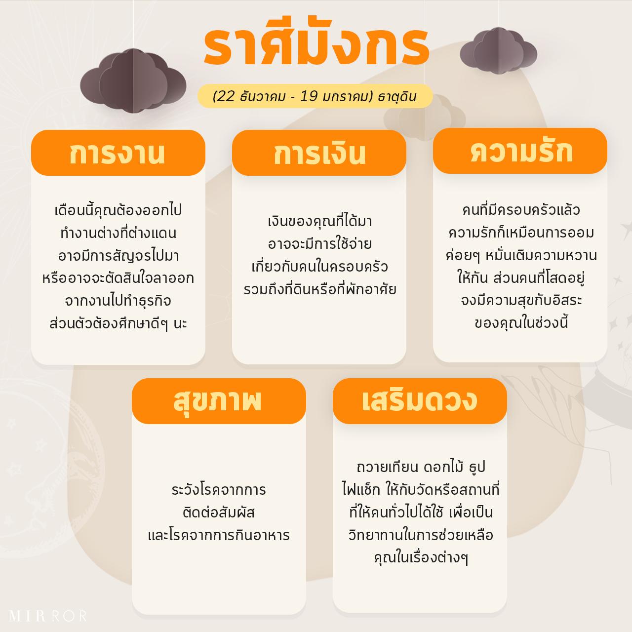 ราศีมังกร (22 ธันวาคม - 19 มกราคม) ธาตุดิน