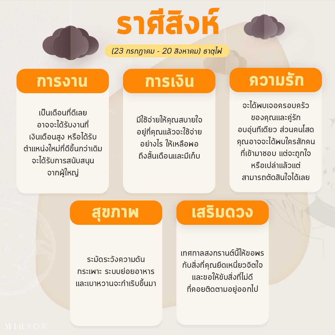 ราศีสิงห์ (23 กรกฎาคม - 20 สิงหาคม) ธาตุไฟ