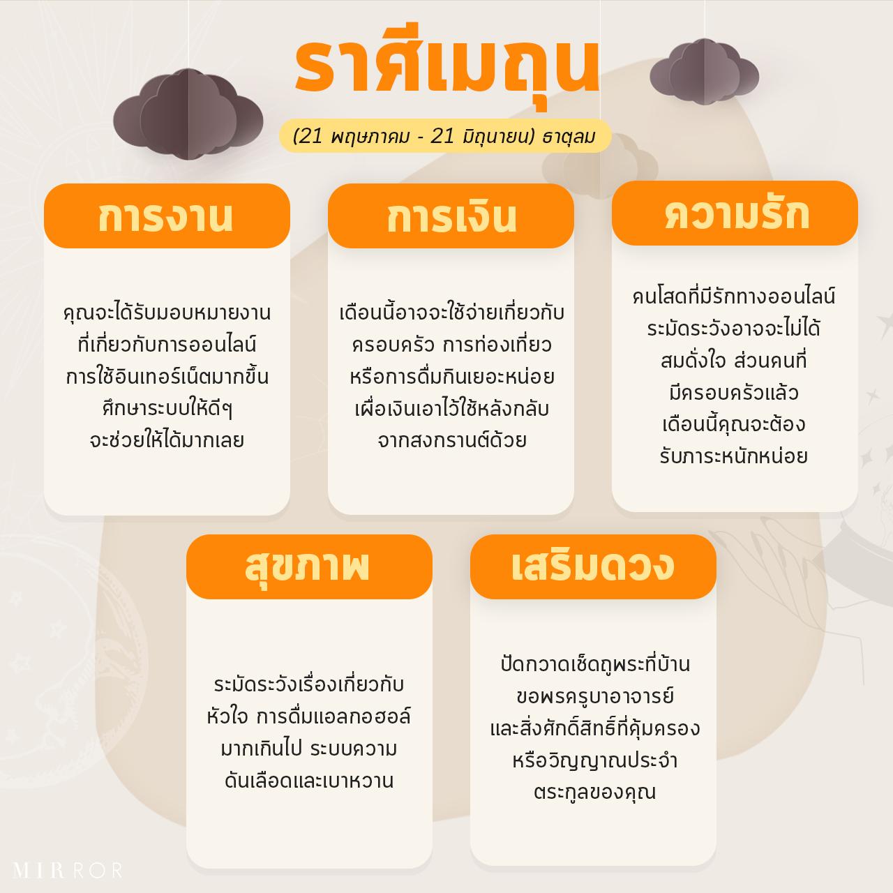 ราศีเมถุน (21 พฤษภาคม - 21 มิถุนายน) ธาตุลม