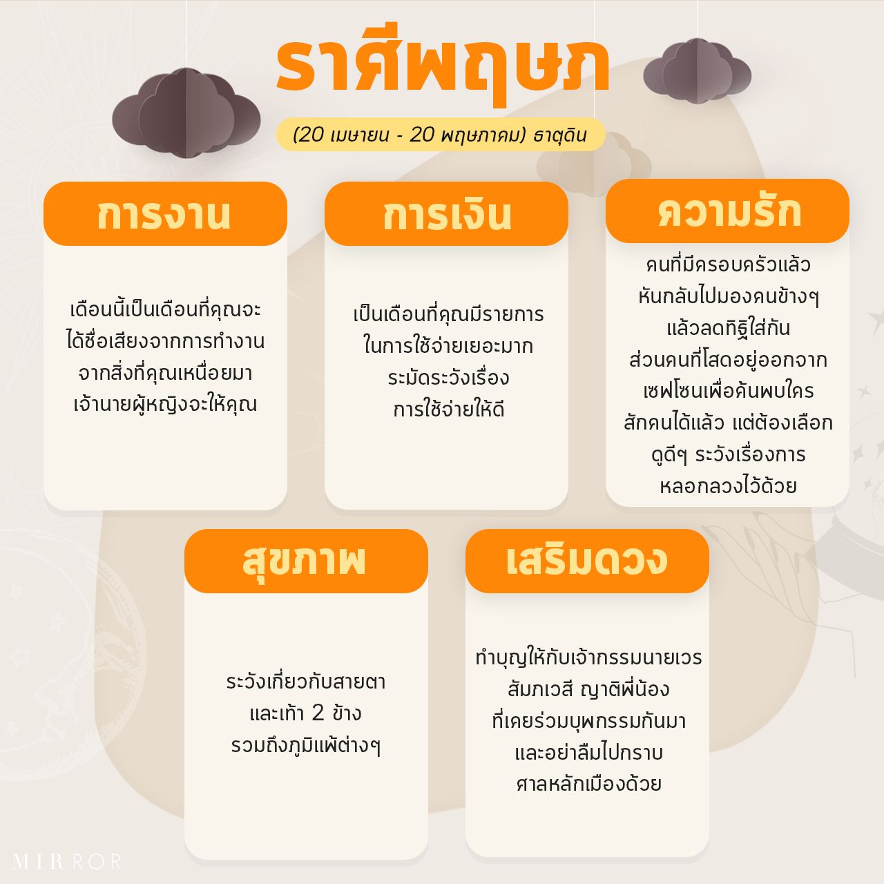 ราศีพฤษภ (20 เมษายน - 20 พฤษภาคม) ธาตุดิน