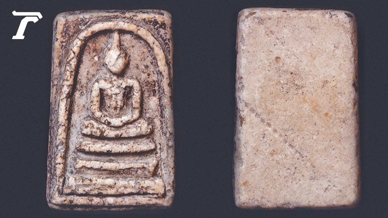 ย้อนมาพิจารณาแม่พิมพ์...อีกที ทั้งที่ดูเผินๆ สึกช้ำเพราะลอกรัก...แต่ตรงร่องอก เห็นเส้นสังฆาฏิสองเส้น และที่เด่นสะดุดตาที่สุด ก็คือเส้นขอบจีวร...ที่หักออกไปหาซอกรักแร้ขวา...