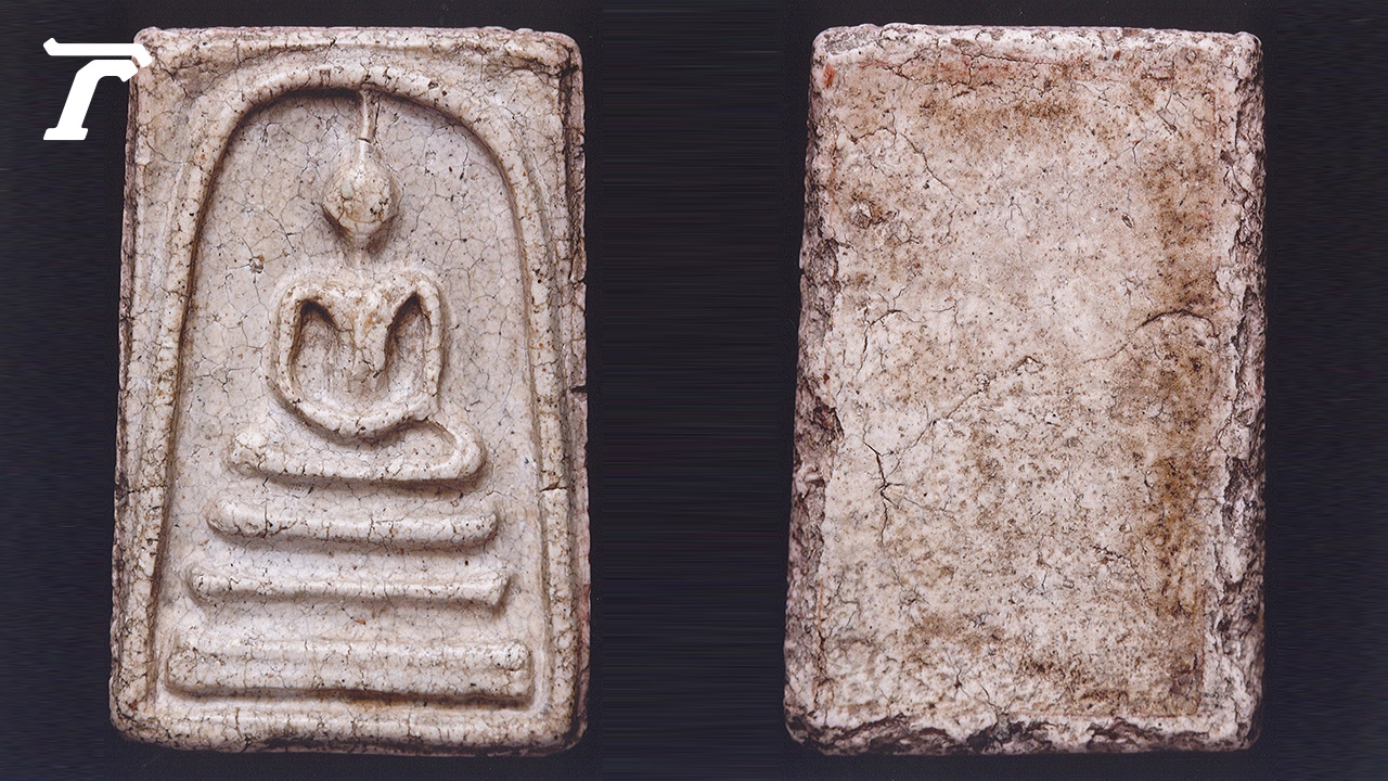 แต่เมื่อดูด้านหลัง ริมขอบสี่ข้างที่หลุดล่อน หลุมร่อง เนินเรียบ เสริมด้วยฝ้ารักเก่าสีดำแกมน้ำตาล ที่คือมาตรฐานหลังพระสมเด็จวัดระฆัง ที่เห็นๆกันเจนตา