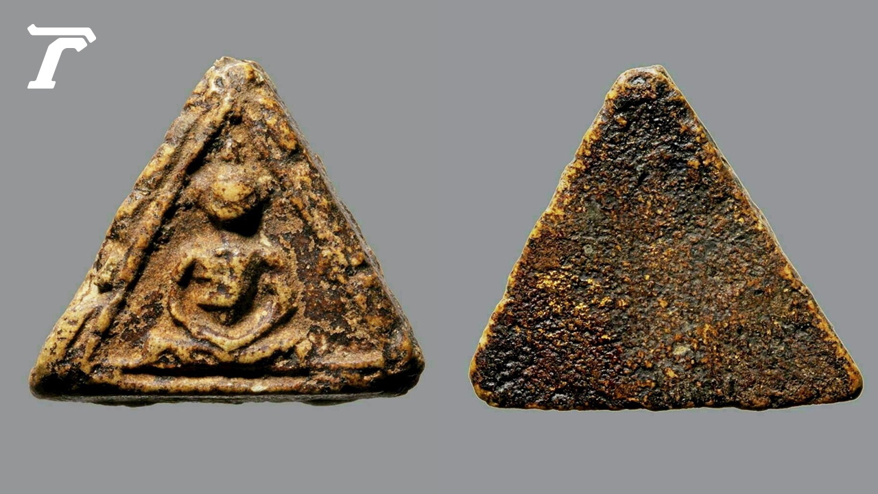 พระพิมพ์สามเหลี่ยม หน้าหมอน กรุเจดีย์เล็ก วัดใหม่อมตรส ของต๊อด ปิติ ภิรมย์ภักดี.