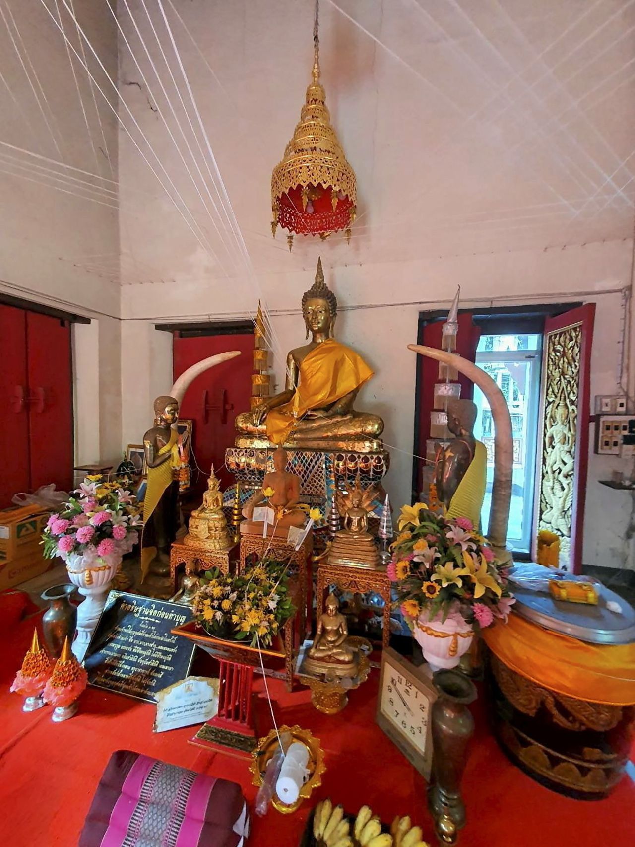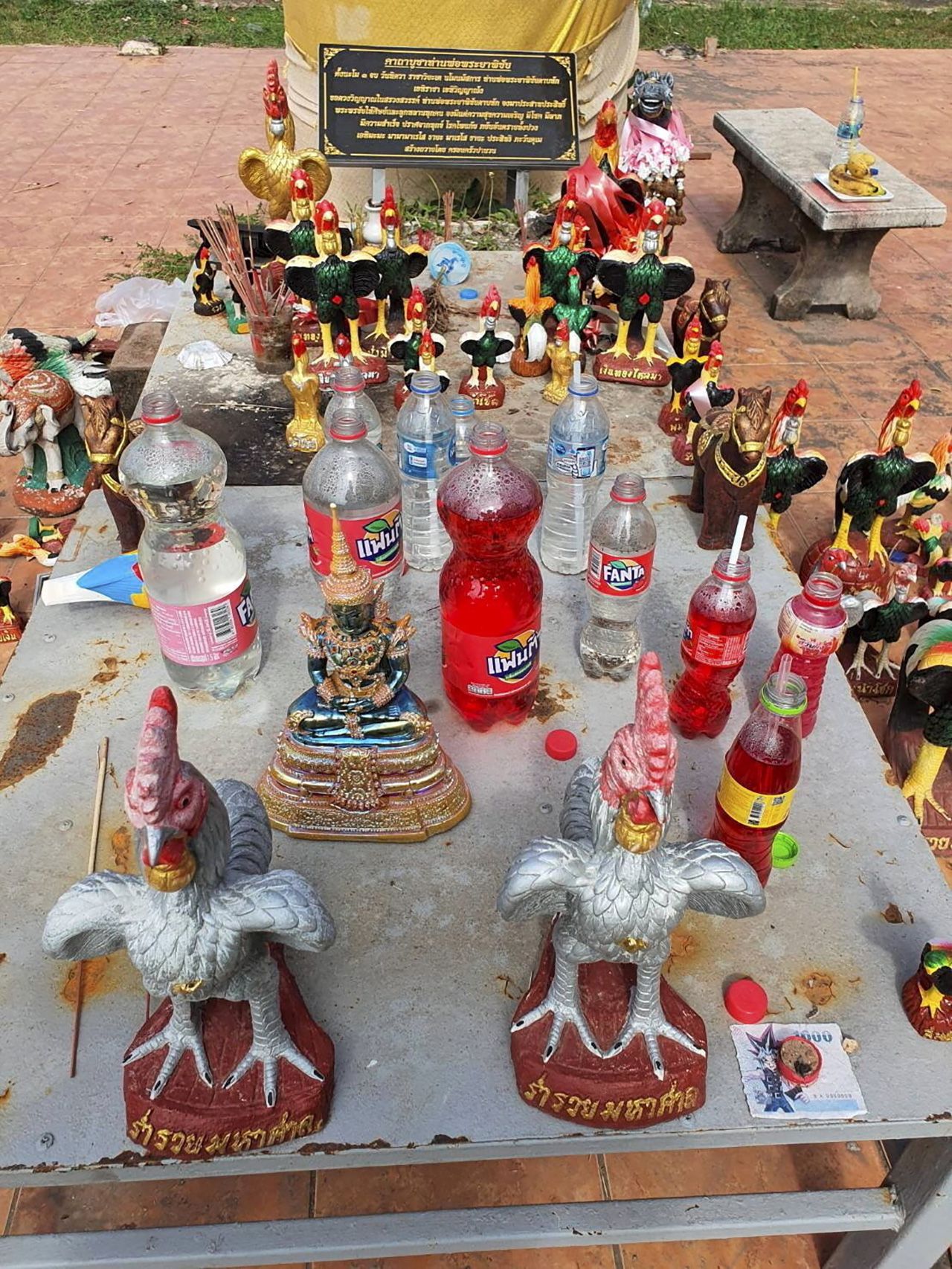 น้ำสะอาด หรือเครื่องดื่มที่แสดงถึงความเคารพ ผลไม้ เช่น กล้วย หรือมะพร้าว