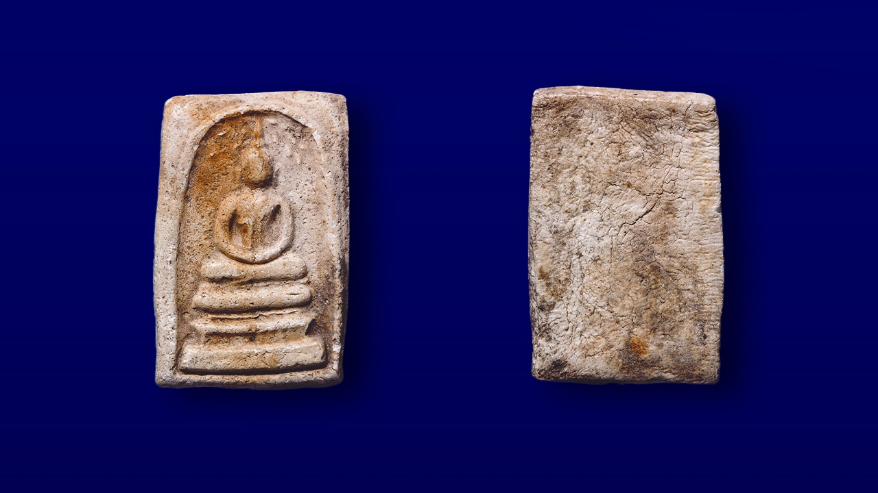 ข้อพิจารณาคราบเปื้อนนั้นบางๆ เห็นได้ชัด...ไม่ใช่คราบกรุ ผิวขาวนวลส่วนใหญ่ที่เหลือ นุ่มนวลตา ริ้วรอยธรรมชาติ หลุมร่องเล็กๆ ด้านหน้า ด้านหลังรอยยุบรอยแยกด้านดิ่ง ตัดริ้วรอยกาบหมากด้านขวาง เป็นธรรมชาติด้านหลังสมเด็จวัดระฆังที่คุ้นตา