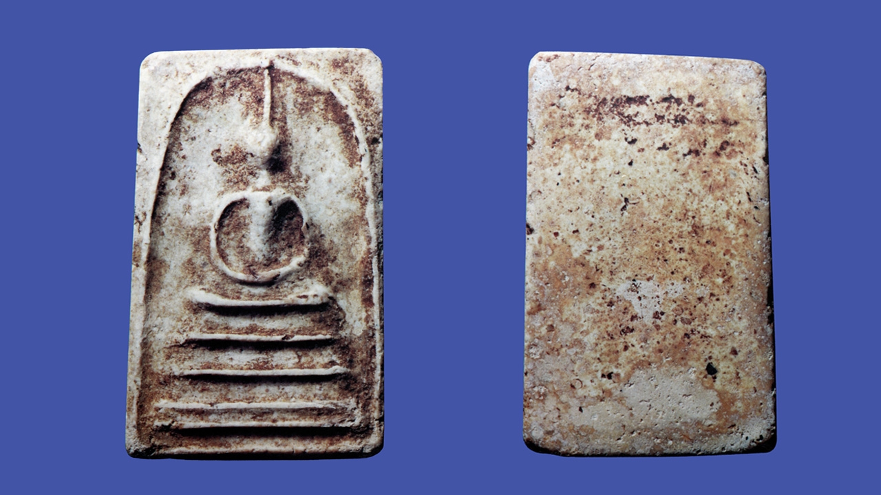 ติดตามอ่านเพิ่มเติมได้ที่เพจ พระสมเด็จศาสตร์ โดย พ.ต.ต.คมสัน สนองพงษ์ และขอขอบคุณ ผู้ช่วยศาสตราจารย์รังสรรค์ ต่อสุวรรณ ที่กรุณาเอื้อเฟื้อรูป พระสมเด็จวัดบางขุนพรหมองค์ครู เพื่อให้ความรู้ และขอขอบคุณท่านเจ้าของพระท่านปัจจุบัน พระองค์นี้เป็นพระสมเด็จวัดบางขุนพรหม พิมพ์เส้นด้ายที่งดงามมากอีกองค์หนึ่ง พิมพ์ย่อยแขนกลมเกศยาว (นิรนาม แห่งนิตยสาร พรีเชียส ได้แบ่งไว้เป็น 7 พิมพ์ทรงย่อย) สังเกตจากลักษณะของวงแขนและพระเกศ (พระพิมพ์เส้นด้ายเป็นพระสมเด็จวัดบางขุนพรหมพิมพ์ที่พบมากที่สุด พอๆ กับพิมพ์สังฆาฏิ) พิมพ์ทรงถูกต้องตามตำรา มีความคมชัดงดงาม เส้นซุ้มและเส้นองค์พระรวมถึงเส้นฐาน เป็นลักษณะเหมือนเส้นลวดๆ หรือเส้นด้าย ที่เป็นที่มาของชื่อพิมพ์บางส่วนมุดตัวที่บริเวณติดกับผนังพระคล้ายเส้นก๋วยเตี๋ยว มีวรรณะขาว เนื้อมีลักษณะหนึกแกร่งผสมนุ่ม มีคราบรักผสมขี้กรุหลงเหลือปรากฏให้เห็นบริเวณด้านหน้าและด้านหลังองค์พระ ด้านหลังเป็นแบบหลังเรียบ มีรอยยุบย่นโดยทั่วไป ขอบข้างด้านหลังเป็นสันนูนขึ้นมาเล็กน้อยแทบไม่เห็น ตัดขอบค่อนข้างใกล้เส้นซุ้มทำให้ไม่เห็นรอยขอบปลิ้น ซึ่งขอบปลิ้นมักจะพบในพระสมเด็จวัดบางขุนพรหม เป็นองค์ต้นแบบที่ดีเพื่อใช้ในการศึกษาหาความรู้เกี่ยวกับพระสมเด็จวัดบางขุนพรหม ติดตามอ่านบทความอื่นเพิ่มเติมได้ที่คอลัมน์ ศาสตร์แห่งพระสมเด็จ