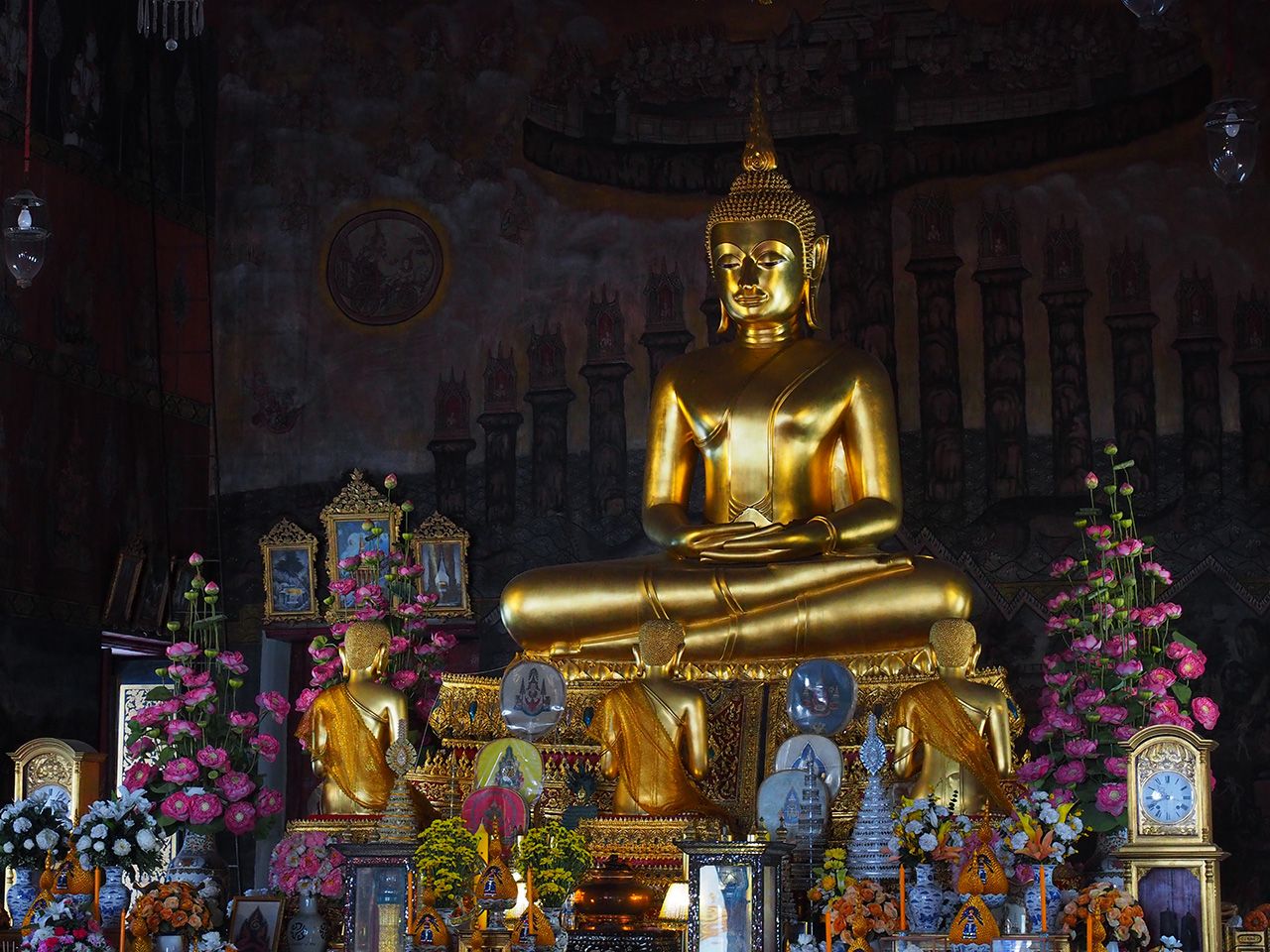 พระประธานในพระอุโบสถวัดระฆังนี้มีรูปลักษณะอันงดงามยิ่งนัก เนื้อทองสัมฤทธิ์ ปางสมาธิ สร้างเลียนแบบพระพุทธรูปสมัยอู่ทอง (อยุธยา) ตามประวัติกล่าวว่า พระพุทธรูปองค์นี้ได้ชลอมาอยู่ที่วัดระฆังนี้ในสมัยรัชกาลที่ ๓ กรุงรัตนโกสินทร์ เจ้าประคุณสมเด็จฯท่านคงจะได้เข้ามาปฏิบัติและบำเพ็ญสมาธิในพระอุโบสถนี้เป็นประจำ พระสมเด็จพิมพ์ใหญ่ของท่านคงจะได้รับแบบอย่างและนิมิตรไปจากพระพุทธรูปองค์นี้”