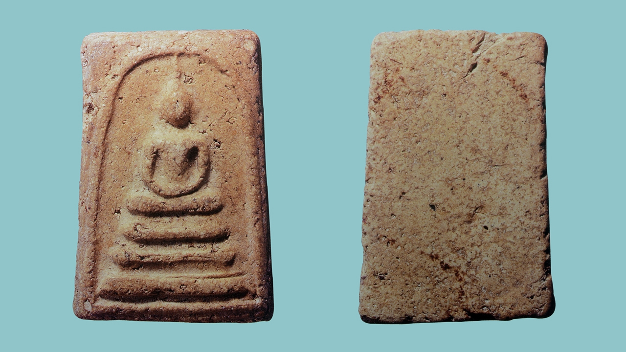 ติดตามอ่านเพิ่มเติมได้ที่เพจ พระสมเด็จศาสตร์ โดย พ.ต.ต.คมสัน สนองพงษ์ และขอขอบคุณ ผู้ช่วยศาสตราจารย์รังสรรค์ ต่อสุวรรณ ที่กรุณาเอื้อเฟื้อรูป พระสมเด็จวัดระฆังฯ องค์ครูอีกองค์หนึ่ง เพื่อให้ความรู้ และขอขอบคุณท่านเจ้าของพระท่านปัจจุบัน พระองค์นี้เป็นพระสมเด็จวัดระฆังฯ พิมพ์ทรงเจดีย์ องค์ครู ที่งดงามมากอีกองค์หนึ่ง สภาพสมบูรณ์ ผ่านการใช้ วรรณะขาวอมน้ำตาล เนื้อหนึกนุ่ม ไม่ปรากฏผิวแตกลายงาชัดเจนนัก (พระเนื้อหนึกนุ่มมักไม่แตกลายงา) มีเม็ดพระธาตุปรากฏให้เห็นหลายจุดชัดเจน มีรอยรูพรุนเข็ม พื้นผนังองค์พระปรากฏรอยหนอนด้นที่เป็นเอกลักษณ์ของเนื้อพระวัดระฆังฯ พิมพ์ทรงถูกต้องตามตำรา พระมีความลึกเต็ม มีเอกลักษณ์เฉพาะองค์ที่ฐานชั้นล่างด้านขอบบนมีลักษณะปริแยกเล็กน้อย (ฐานด้านล่างมีความสำคัญมากในการดูพระแท้) ซุ้มผ่าหวายมีขนาดใหญ่ซึ่งเป็นลักษณะของพระสมเด็จวัดระฆังฯ (วัดบางขุนพรหมมักมีขนาดเล็กกว่า) พื้นผนังเป็นระนาบเรียบซึ่งเป็นลักษณะเด่นของพระสมเด็จฯ ตัดขอบพอดีกรอบบังคับแม่พิมพ์ ด้านหลังเป็นแบบหลังเรียบมีคราบคล้ายน้ำมันตังอิ้วสีแดงปรากฏให้เห็นประปราย มีร่องรอยยุบย่นทั่วไป มีรอยริ้วระแหงบริเวณด้านบน มีรอยปูไต่ (ขอบปริกระเทาะ) เล็กน้อยทั้งสี่ด้านที่แสดงถึงธรรมชาติความเก่า (มักพบในวัดระฆังฯ) เป็นองค์ต้นแบบที่ดีเพื่อใช้ในการศึกษาหาความรู้เกี่ยวกับพระสมเด็จวัดระฆังฯ ติดตามอ่านบทความอื่นเพิ่มเติมได้ที่คอลัมน์ ศาสตร์แห่งพระสมเด็จ