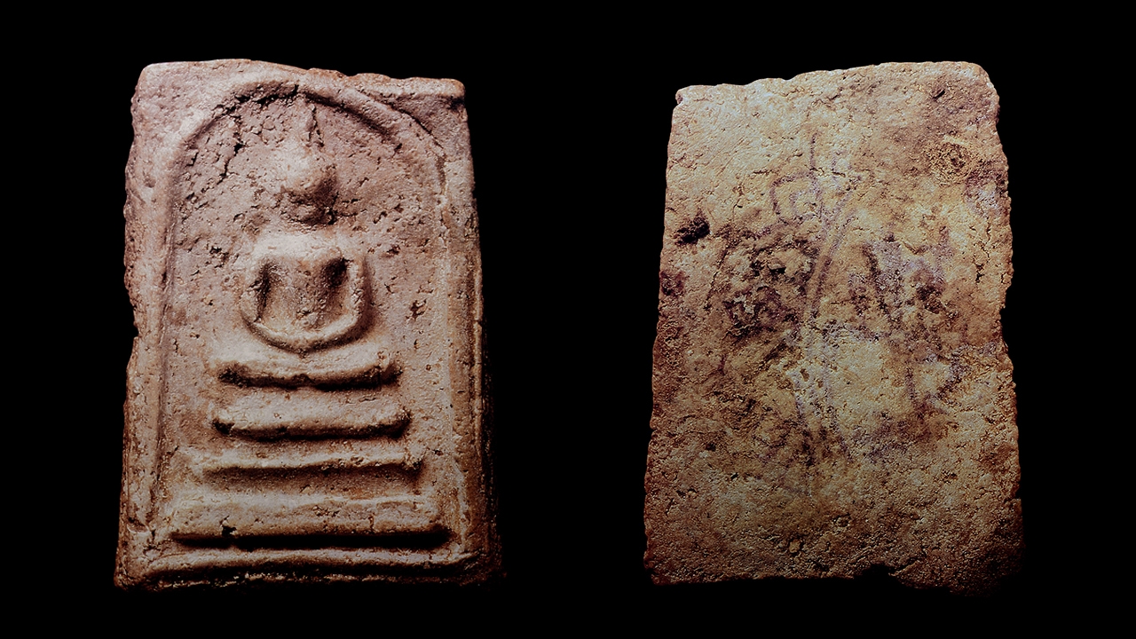 10. พระสมเด็จวัดบางขุนพรหม พิมพ์ทรงเจดีย์ องค์ที่กดแม่พิมพ์ชัดๆ จะปรากฏพระกรรณอยู่รำไร แต่ส่วนใหญ่จะมองไม่เห็น เพราะมีขี้กรุขึ้นเต็มหรือกดไม่เต็มพิมพ์
