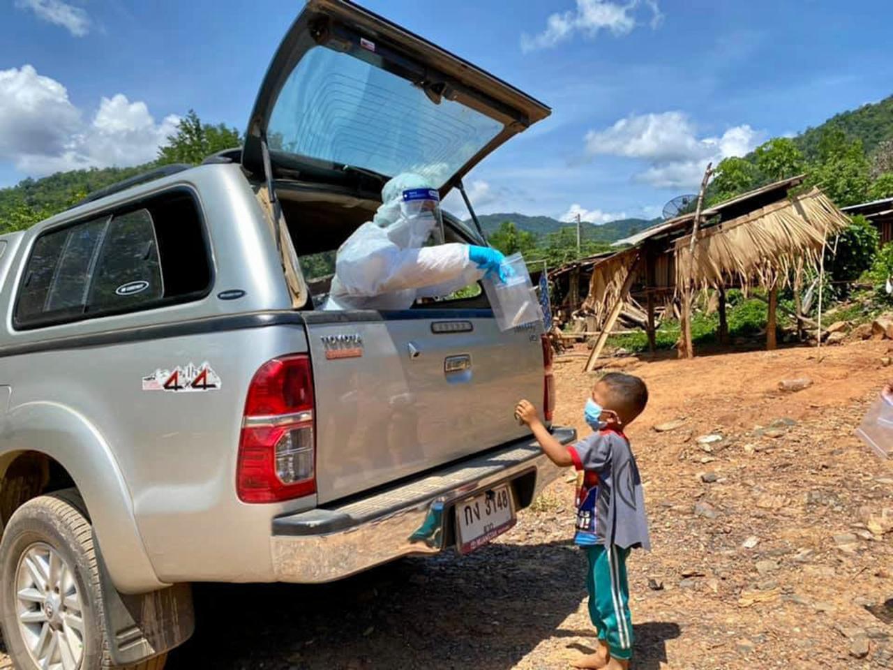 ส่วนคนที่เสี่ยงสูงประมาณ 120 คนนำเข้าโรงเรียนประจำหมู่บ้านที่แปลงร่างเป็นสถานกักกันชั่วคราว แบ่งเป็นห้องๆอยู่แล้วทำให้ใช้ได้เลย คนที่มีความเสี่ยงรองๆลงมาก็อยู่บ้าน เจ้าหน้าที่สอบสวนโรคไปช่วยกันหลายโรงพยาบาลเพราะว่าตอนที่แม่สอดมีระบาดหนักทุกๆอำเภอก็เคยมาช่วยหามรุ่งหามค่ำเหมือนกัน