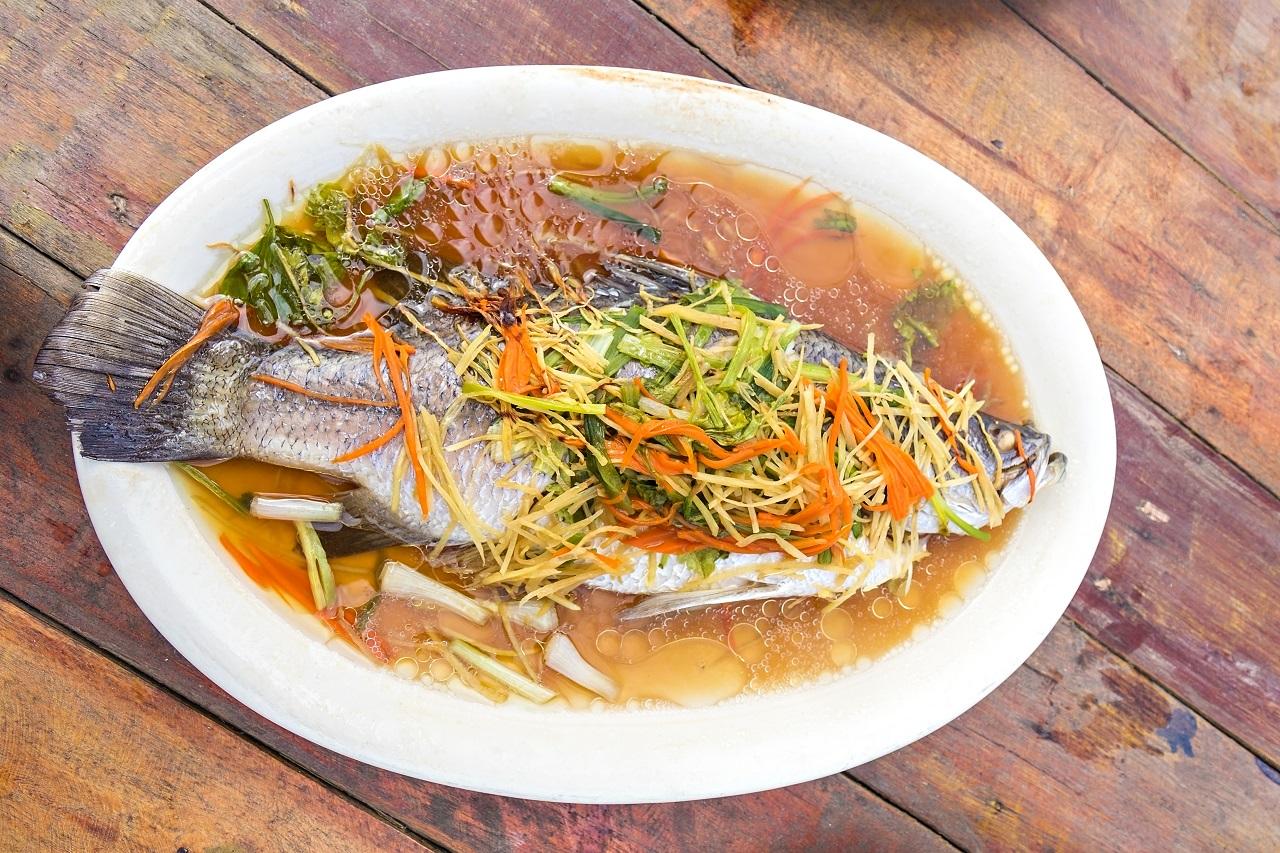 ปลา ในภาษาจีน ออกเสียงเหมือนคำว่า ความเหลือเฟือ เมนูปลาจึงมีความหมายว่าการมีกินมีใช้เหลือเฟือตลอดปี นอกจากนี้ ชาวจีนเชื่อว่าในปลามีเทพสถิตอยู่ การรับประทานปลาในช่วงปีใหม่จะทำให้เทพขับไล่วิญญาณร้ายออกไปจากชีวิต สำหรับวิธีการกินปลา ชาวจีนมีความเชื่อว่า เมนูปลาควรจะเป็นจานสุดท้ายที่เหลือส่วนหัวและหางไว้จนถึงวันขึ้นปีใหม่ ซึ่งเป็นการแสดงออกว่าปีใหม่นี้จะเริ่มต้นและจบลงด้วยความเหลือเฟือ การเสิร์ฟหัวปลาก็ควรหันหัวปลาไปทางที่ผู้อาวุโสนั่ง เป็นตัวแทนของความเคารพ และระหว่างการรับประทานอาหาร ไม่ควรหันหัวปลาไปทางอื่น ปลาสามารถนำมาสร้างสรรค์เมนูได้หลากหลาย ไม่ว่าจะเป็น ปลานึ่งซีอิ๊ว ปลาต้มน้ำซุป เป็นต้น