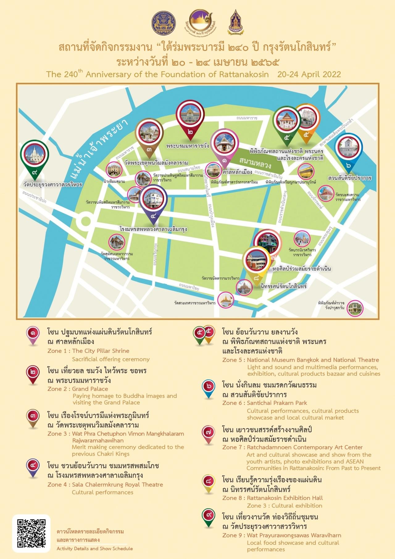 เมื่อนึกถึงกิจกรรมไหว้พระ 9 วัด กรุงเทพมหานคร ก็ต้องนึกถึงโซนรอบเกาะรัตนโกสินทร์ ซึ่งปีนี้มีกิจกรรมจากกระทรวงวัฒนธรรม ที่เล่าเรื่องราวของเมื่อเก่ากรุงรัตนโกสินทร์ 240 ปี ผ่านการแสดง ณ จุดต่างๆ รวมถึงการจัดแสดงแสงสีถึงช่วงหัวค่ำ รวมถึงโซนจำหน่ายสินค้าที่ให้เดินเลือกผลิตภัณฑ์วัฒนธรรมของชุมชนต่างๆ ได้อย่างจุใจ