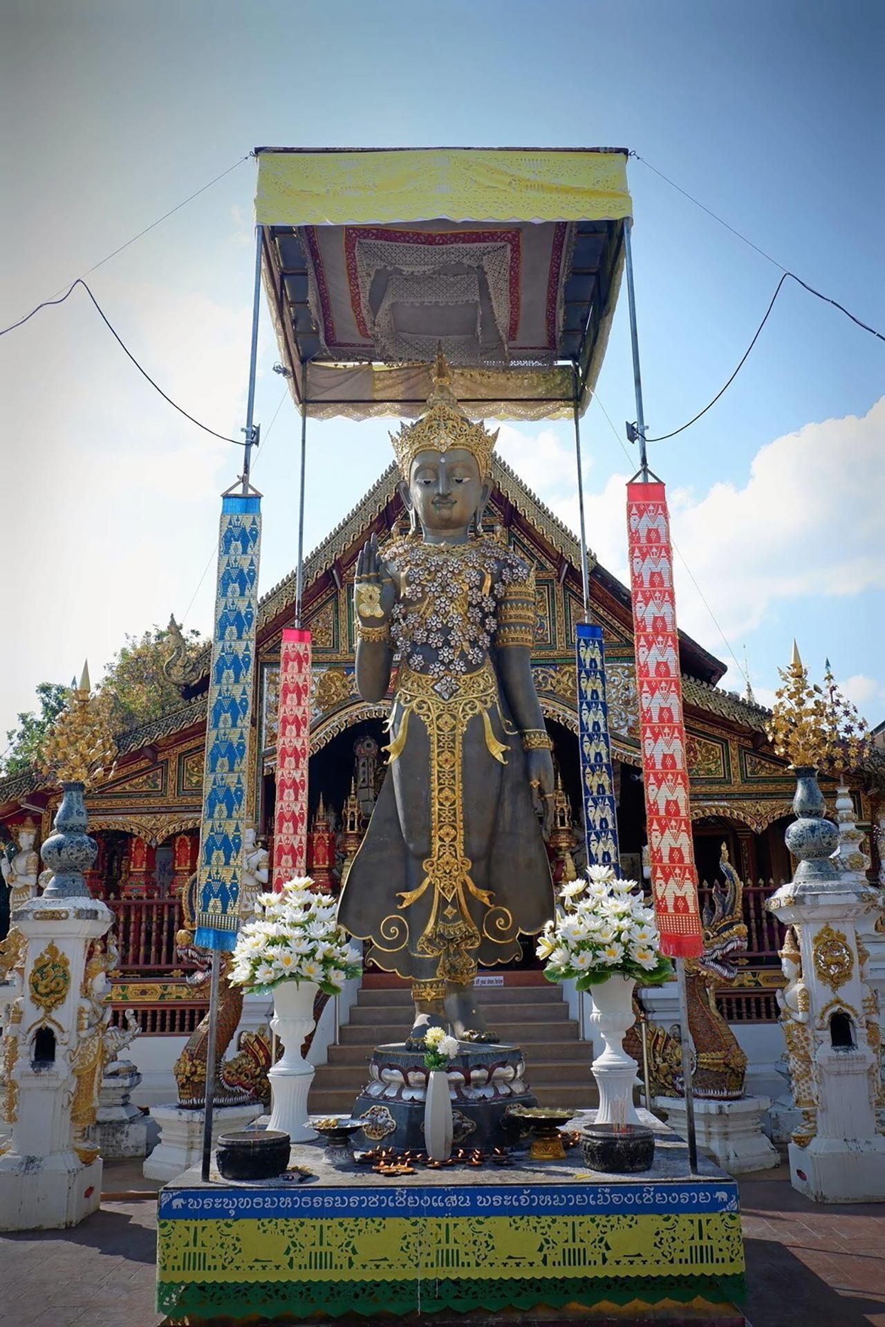 ข้างต้นนี้ปรากฏบันทึกไว้ในแผ่นทองคำจารึกเป็นภาษาพม่า อีกทั้งวัดมิ่งเมืองแห่งนี้ยังเป็นที่ปฏิรูปธรรมของ “พระนางเทพคำขยาย” พระมารดาของพ่อขุนเม็งราย โดยพระองค์จะเสด็จมาปฏิบัติธรรมเป็นประจำและเป็นที่บรรจุพระอัฐิของพระองค์ด้วย