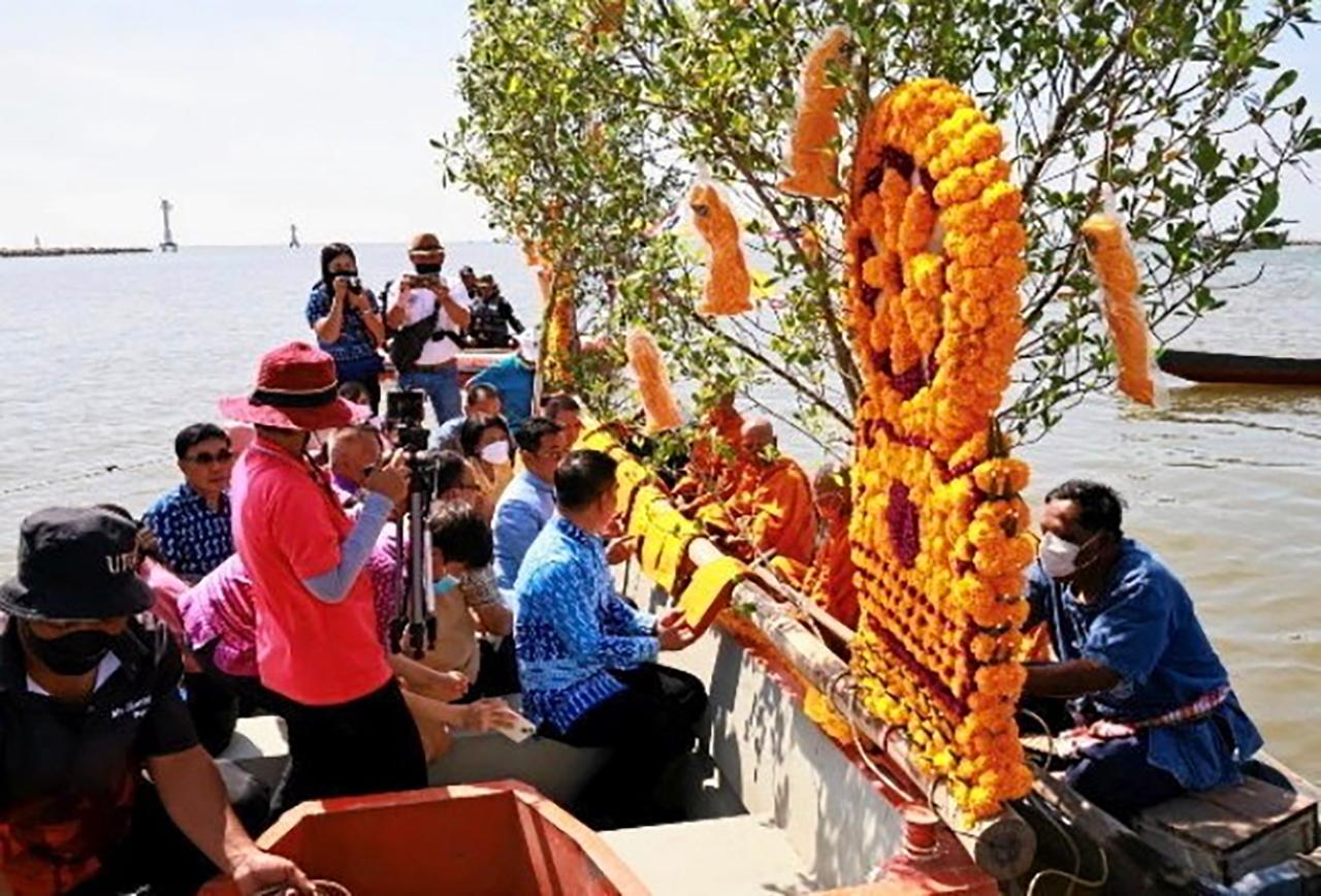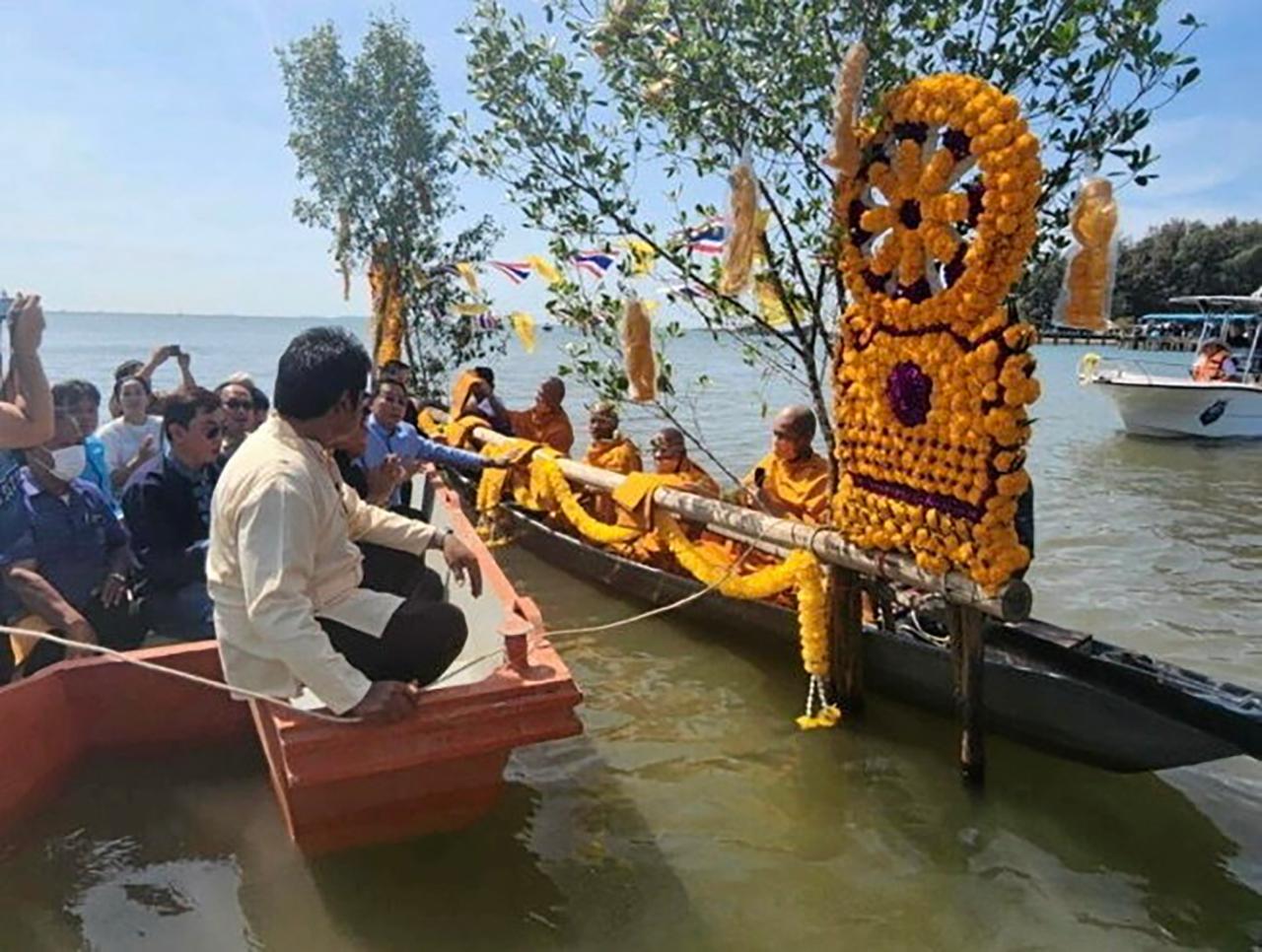 “แต่ก่อนจะจัดกองผ้าป่าบนเรือเพราะสมัยนั้นใช้เรือใหญ่ บางลำมีการนิมนต์พระมาฉันเพลเช้า แล้วรับผ้าป่าเวลาเย็น ถือว่าเป็นมงคลช่วยหนุนการทำประมงโชคดีมีชัย กลับไปก็จะทำสังฆทานและรดน้ำมนต์ ให้แคล้วคลาดเหตุร้ายจะกล้ำกรายระหว่างเดินทาง...ทุกปีที่ออกเรือหลังการถวายผ้าป่า เวลาค่ำมืดดึกดื่นชาวเรือจะเห็นหญิงสาวแต่งชุดไทยนั่งอยู่หัวเรือพักใหญ่ เป็นความเชื่อว่า...แม่ย่านางแสดงการรับรู้ถึงผลบุญที่ชาวเรือเพิ่งกระทำกันมา จึงปรากฏกายให้เห็นและคอยคุ้มครองความปลอดภัย”