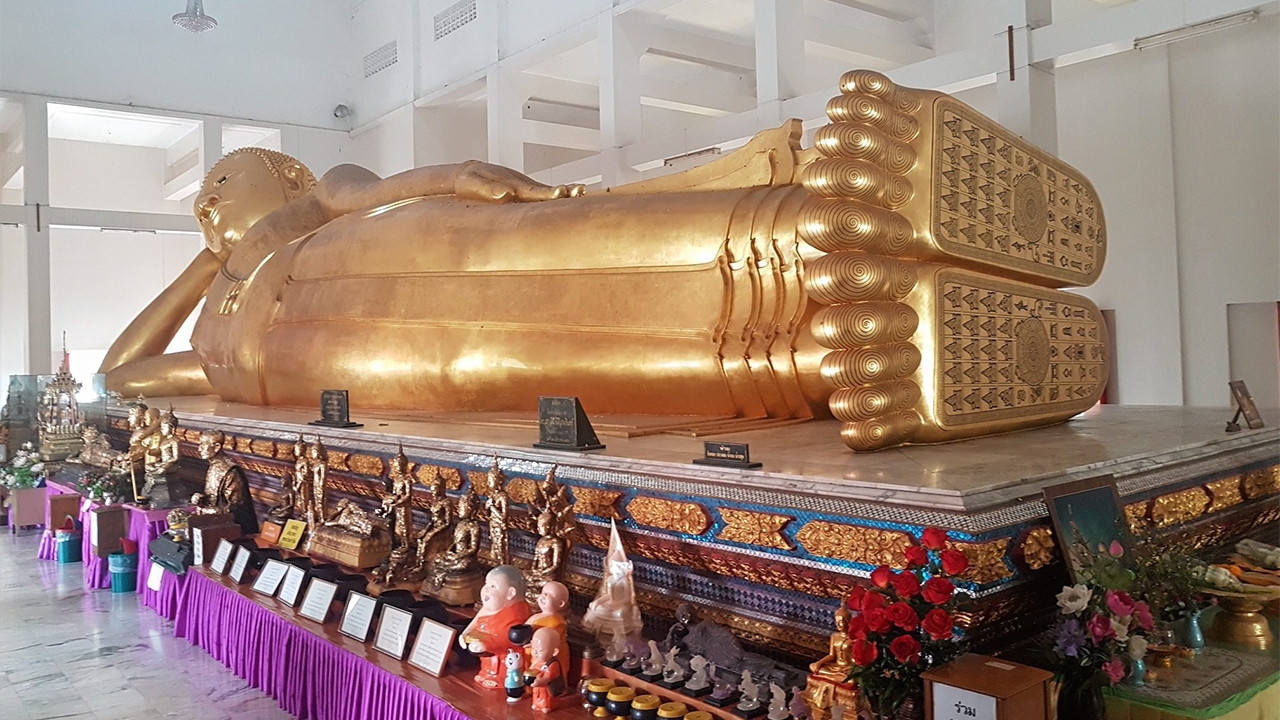 ข้างต้นนี้คือศรัทธาความเชื่อที่ผู้คนไม่น้อยมีต่อพระนอนองค์ใหญ่...ถูกสร้างขึ้นในปี พ.ศ.2519 มีขนาดใหญ่ที่สุดในภาคตะวันออก ด้วยขนาด 9 วา 9 นิ้ว ประดิษฐานในวิหารทรงไทยประยุกต์ สีขาวทอง