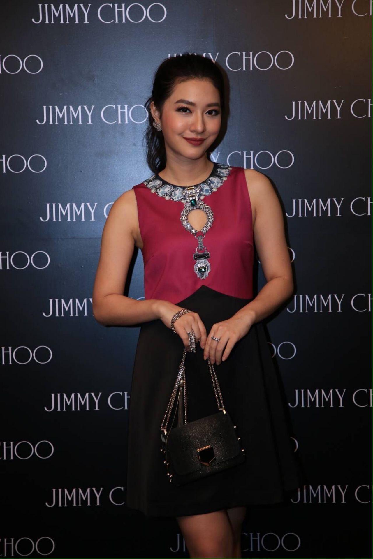 เธอมาในชุดเดรส ช่วงบนเป็นสีชมพูบานเย็น ตัดกับกระโปรงสีดำทำให้ดูเก๋ไม่เบา พร้อมเสริมลุคให้ปังด้วยกระเป๋าหนังสีดำ และรองเท้าส้นสูงสีดำประดับด้านหน้าด้วยมุกสีเมทัลลิค เล่นกับแสงไฟที่ส่องมากระทบ ดูยังไงก็เจิดสุดๆ