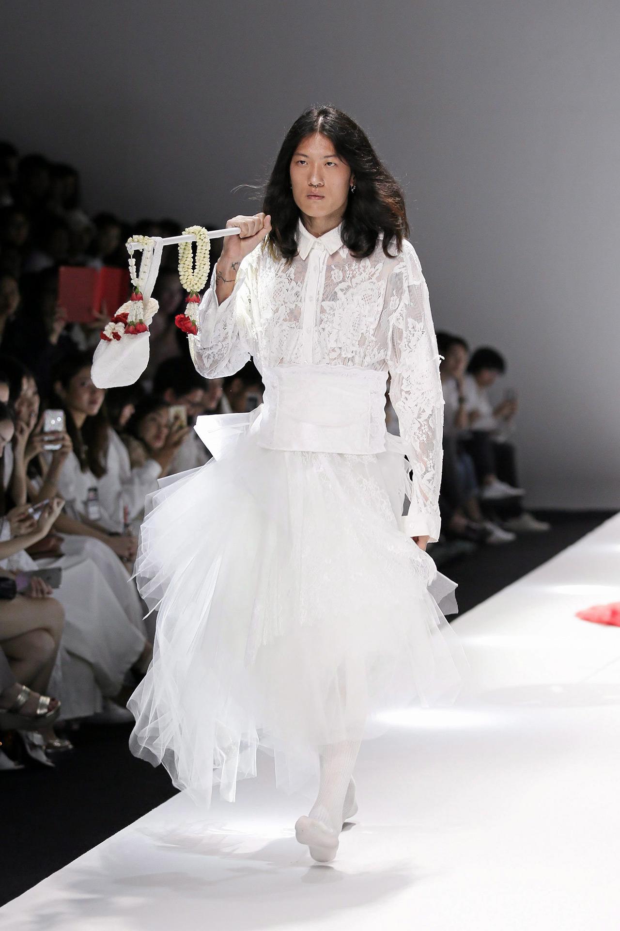 ร้างเวทีไปนาน แต่ยังคงความเก๋าระดับตำนาน เมื่อ “นคร สัมพันธารักษ์” แห่ง NAGARA พาเหล่าแฟชั่นนิสต้าไปสัมผัสความงามของอารยธรรมซามูไร ผ่านโครงชุดได้แรงบันดาลใจจากกิโมโนโบราณและลวดลายผ้าวิจิตร ผสานงานปักของช่างฝีมือชั้นสูง ที่บ่งบอกถึงความพิถีพิถันอันเป็นเอกลักษณ์ รันเวย์ยิ่งร้อนทวีคูณเพราะได้ซุป’ตาร์อย่าง ณเดชน์ คูกิมิยะ, ญาญ่า-อุรัสยา เสปอร์บันด์ และเจนี่ เทียนโพธิ์สุวรรณ ตบเท้าสร้างความคึกคัก ก่อนจะปิดท้ายรันเวย์ด้วยโชว์ดรามาติกของ Tube Gallery presented by TAT โดย “ศักดิ์สิทธิ์ พิศาลสุพงศ์” และ “พิสิฐ จงนรังสิน” พาย้อนไปในยุคแห่งความรุ่งเรืองของเหล่าบุปผาชน.