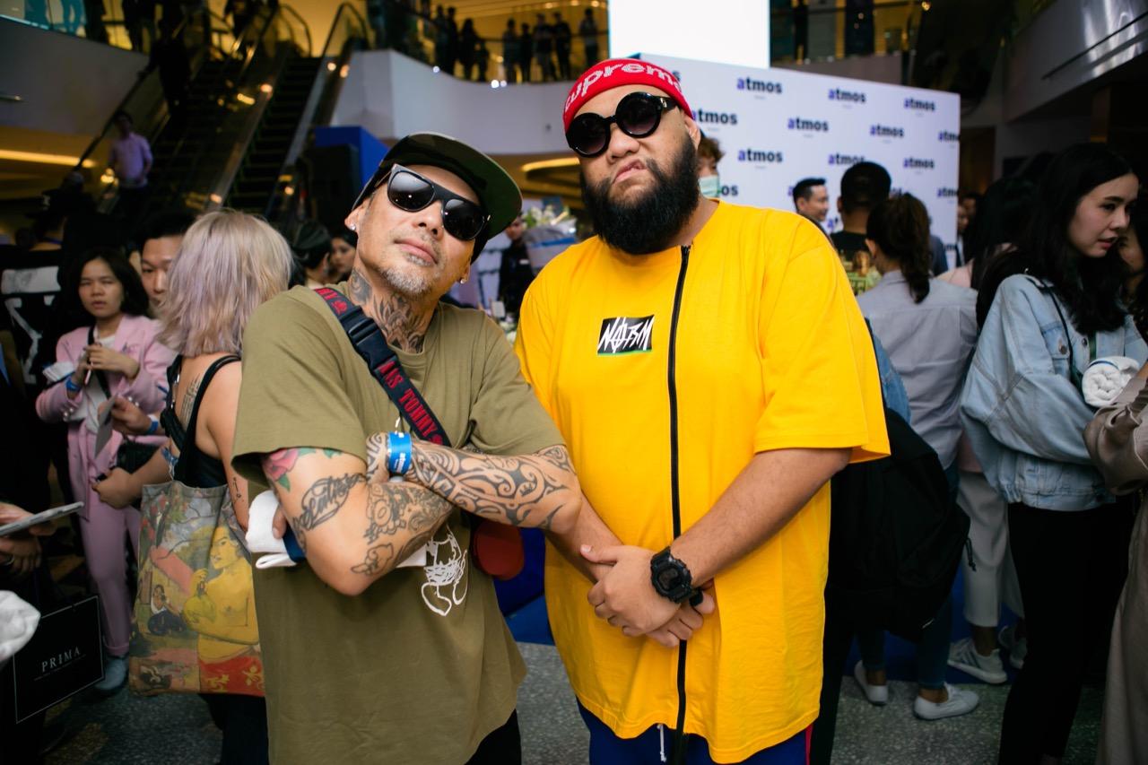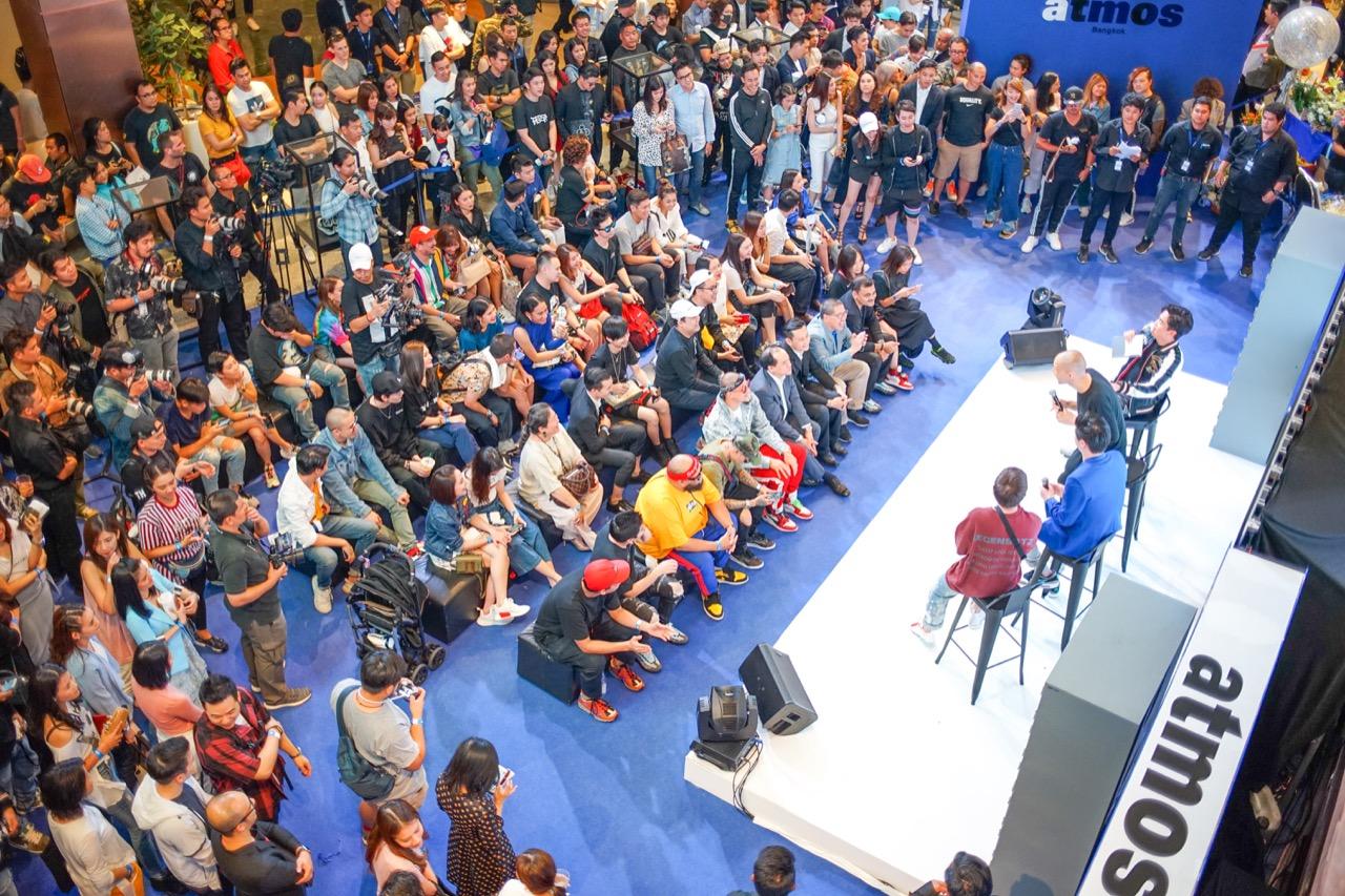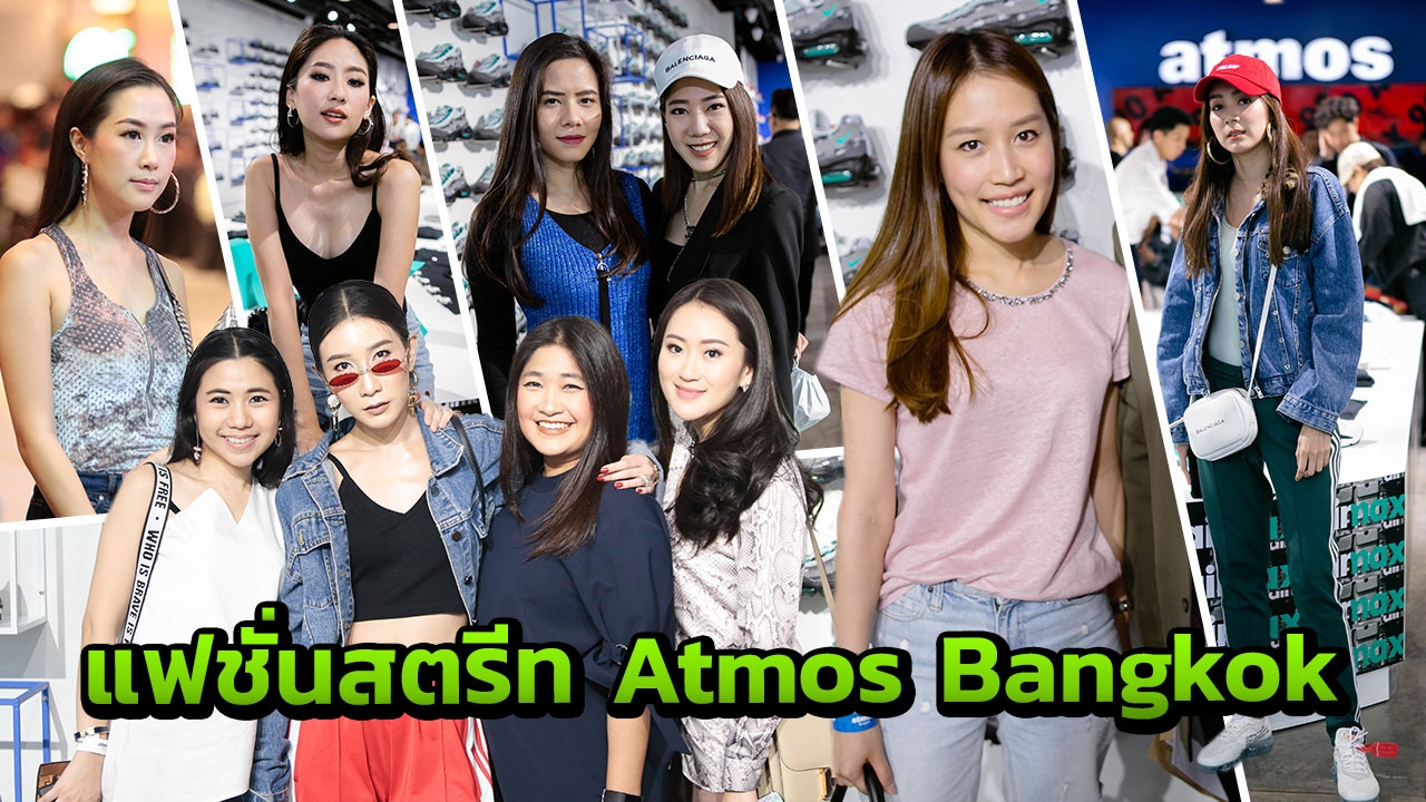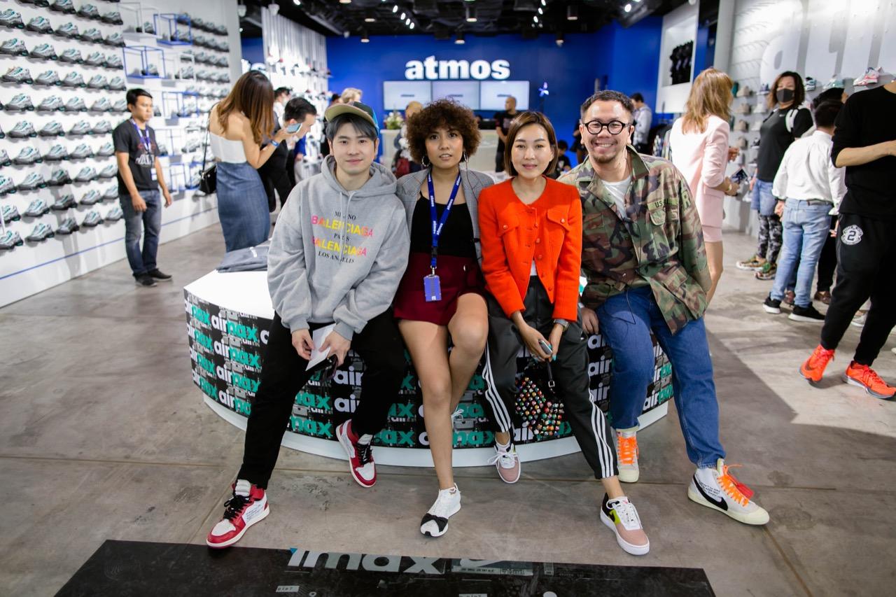 พอทุกอย่างลงตัว ถึงวันจริงเปิดงาน เธอชวนเราไม่รีรอ เพราะ 'atmos Bangkok' คือที่สุดร้านของชาวสนีกเกอร์ระดับโลกอีกร้านหนึ่งที่มาตั้งอยู่ที่ไทย กลางห้างใหญ่เซ็นทรัลเวิลด์ พื้นที่ใหญ่ๆ แน่นขนัดไปด้วยผู้คน ภายในงานดาราเซเลบชื่อดังเข้ามาร่วมงานมากมาย ใครเป็นใครแฟชั่นสตรีท แฟชั่นรองเท้าจัดจ้านแค่ไหน