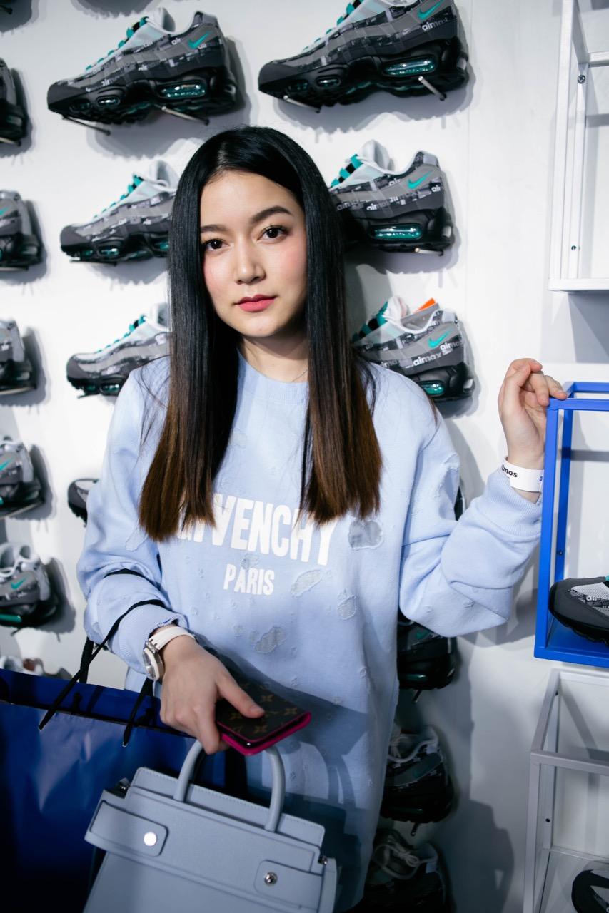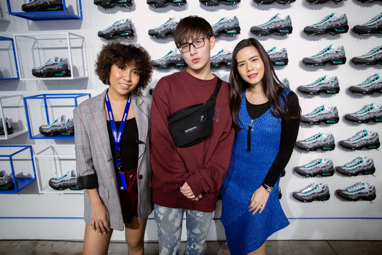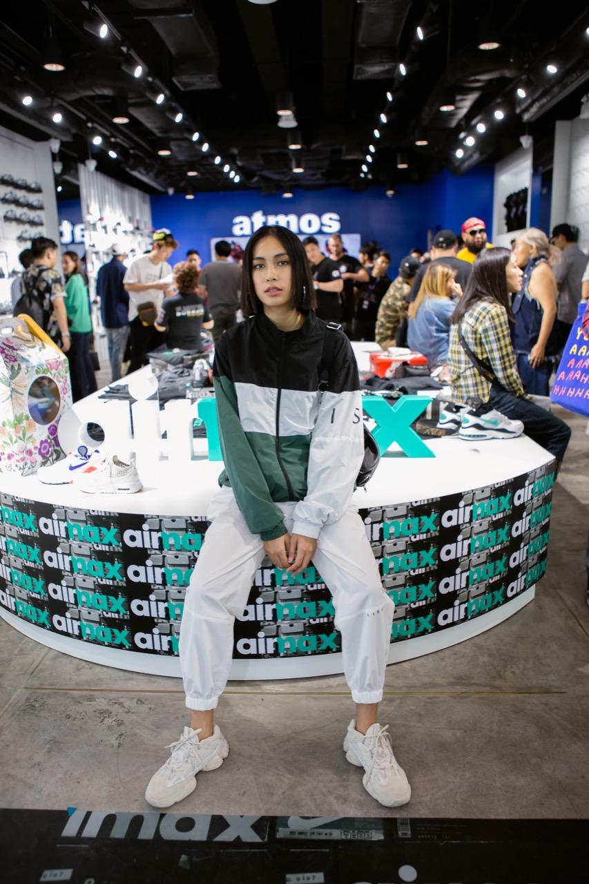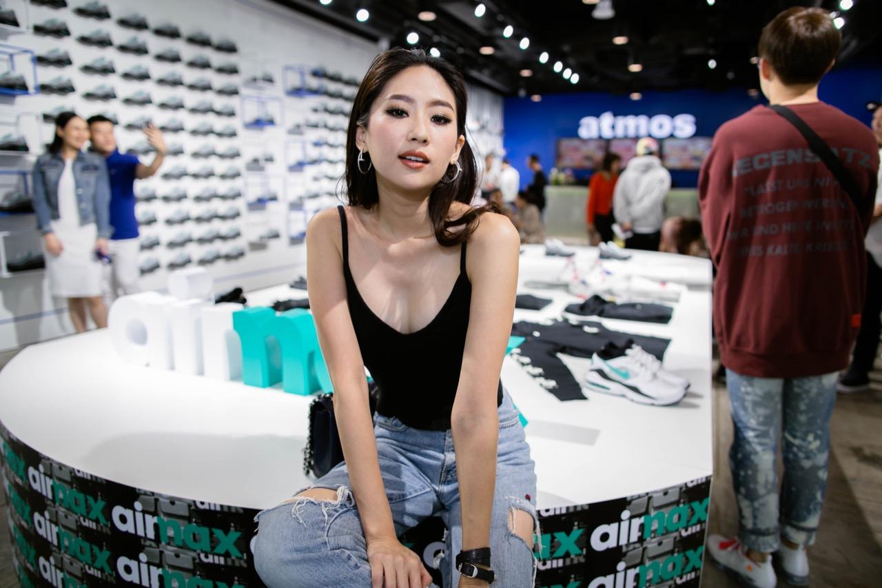 พอทุกอย่างลงตัว ถึงวันจริงเปิดงาน เธอชวนเราไม่รีรอ เพราะ 'atmos Bangkok' คือที่สุดร้านของชาวสนีกเกอร์ระดับโลกอีกร้านหนึ่งที่มาตั้งอยู่ที่ไทย กลางห้างใหญ่เซ็นทรัลเวิลด์ พื้นที่ใหญ่ๆ แน่นขนัดไปด้วยผู้คน ภายในงานดาราเซเลบชื่อดังเข้ามาร่วมงานมากมาย ใครเป็นใครแฟชั่นสตรีท แฟชั่นรองเท้าจัดจ้านแค่ไหน