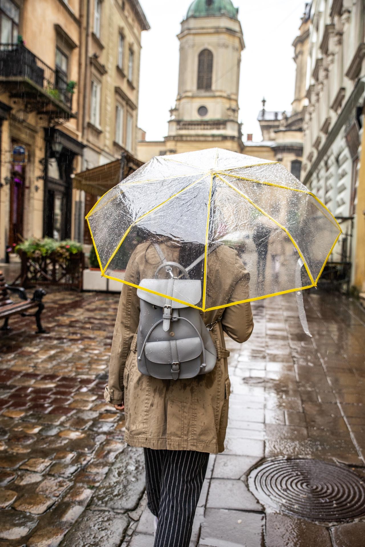 ไอเทมชิ้นนี้สำคัญเป็นอย่างมาก เพราะฝนตกบางครั้งเสื้อกันฝน หรือรองเท้าบูทก็ต้านทานไว้ไม่ได้จริงๆ ฉะนั้นเพื่อให้คุณได้สวยท้าฝนอย่างครบเครื่อง งัดร่มกันฝนแบบใสมาเป็นพรอพเสริมเลยค่ะ เพราะนอกจากจะกันฝน กันเปียกได้แล้ว ยังมีความชิคอีกด้วยนะ
