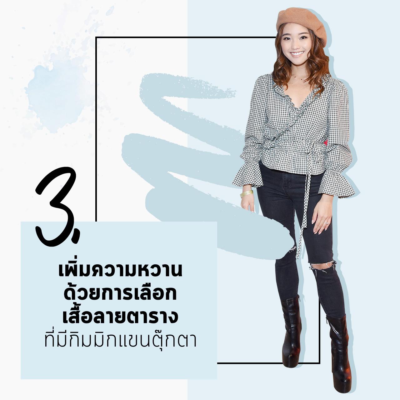 MIRROR recommends : อยากคิวต์มากกว่าเดิม นอกจากใส่ใจเลือกเสื้อที่มีกิมมิกแขนตุ๊กตา และชายระบายแล้ว โทนสีหวานๆ อย่าง ชมพู ฟ้า เหลือง ก็จะทำให้ Lady MIRROR ดูสดใส และน่ารักเพิ่มขึ้นอีกเป็นกองเลยค่ะ แต่ถ้าอยากเท่ขึ้นมาอีกนิดการใส่กางเกงยีนส์ขาดๆ ก็ช่วยเบรกความหวานให้คุณได้เหมือนกัน