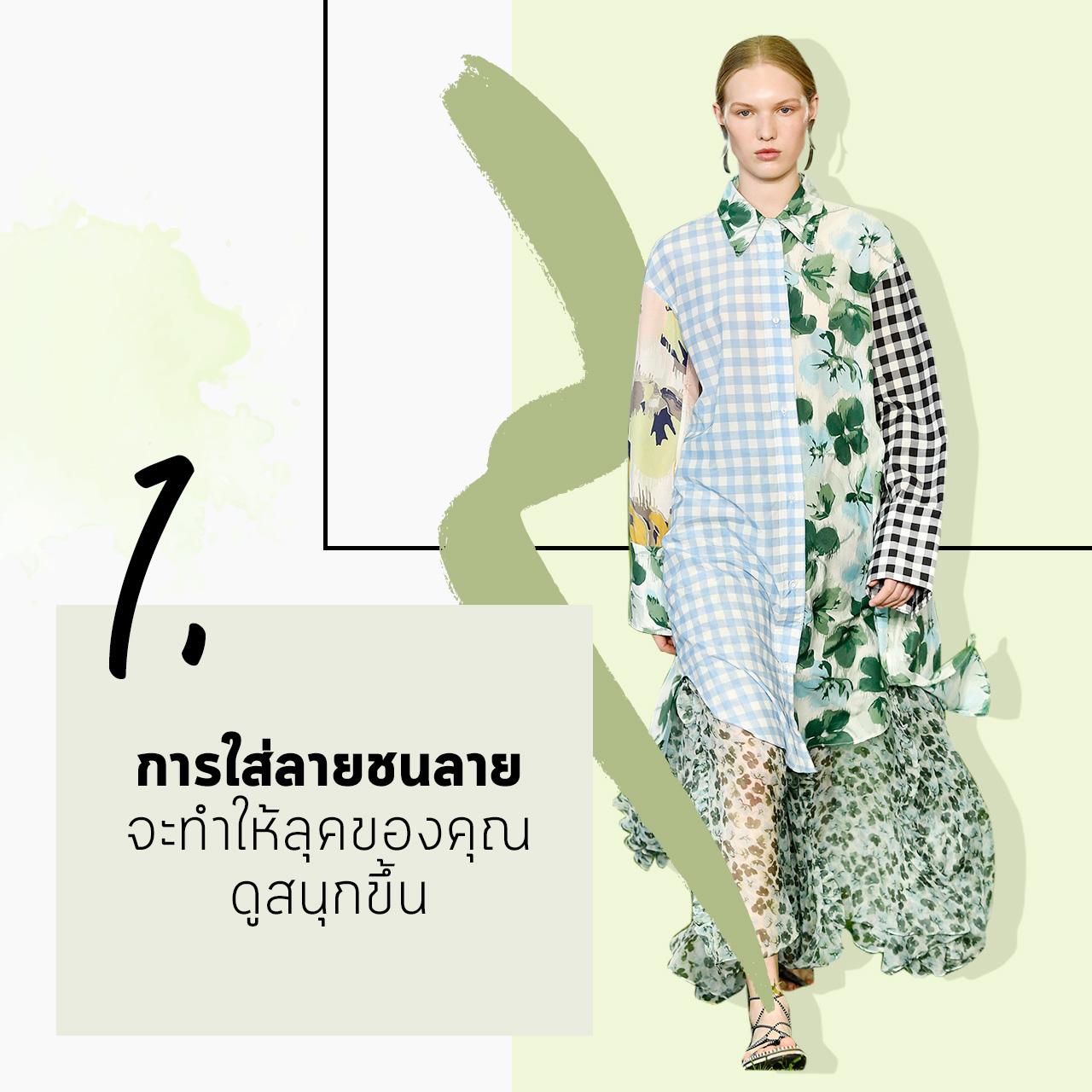 Lady MIRROR หลายๆ คนอาจจะยังไม่รู้ว่าการแหวกกฎเกณฑ์เหนือทุกสิ่ง ประโคมลวดลายเข้าไว้ด้วยกันนั้น เป็นอีกหนึ่งวิธีที่คุณสามารถปฏิบัติได้ แถมยังทำให้ลุคการแต่งตัวของคุณดูสนุกขึ้นอีกด้วย เช่น การเลือกใส่เดรสที่มีการดีไซน์ให้ลายตารางกับลายดอกอยู่ด้วยกัน ก็จะสื่ออารมณ์ได้ถึง 2 ลุคในชุดเดียว คือทั้งความเท่และหวานที่ลงตัวนั่นเอง