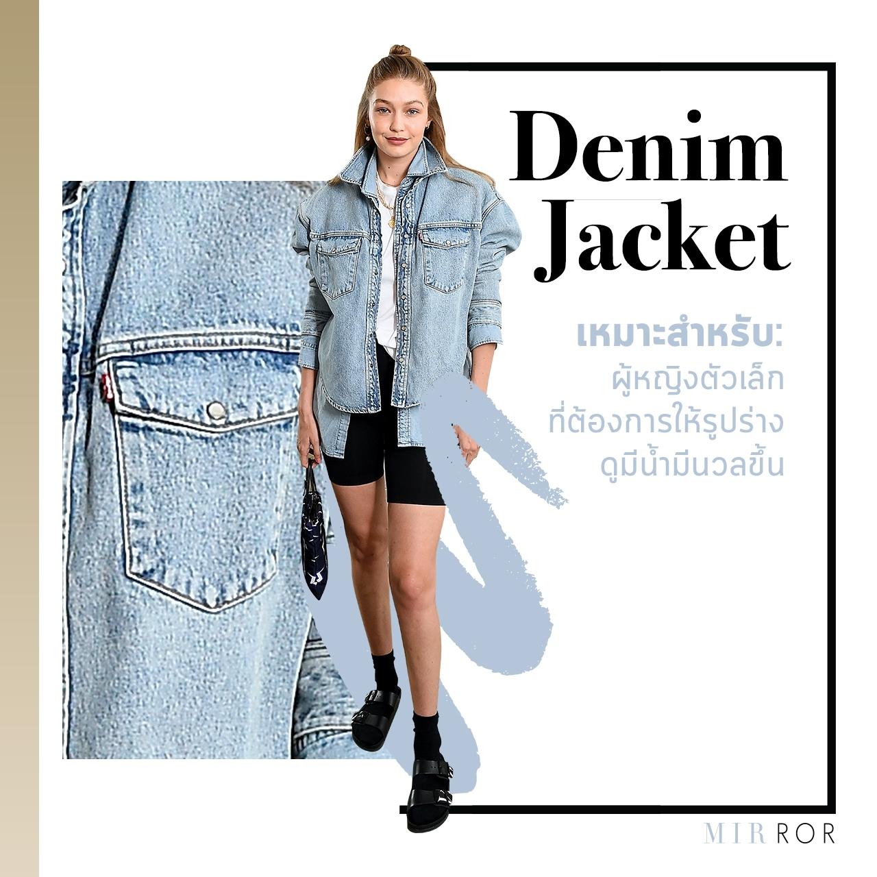 ไอเทมแห่งความคลาสสิก และลุคบอยๆ ที่ Lady MIRROR สามารถคว้ามาใส่ได้หลากหลายโอกาส ตั้งแต่ลุคเที่ยวชิลๆ ที่แมตช์กับกางเกงยีนส์ขาสั้น ไปจนถึงการแมตช์กับชุดเดรสเข้ารูป หรือกระโปรงทรงสอบลายเสือสุดเซ็กซี่ ยามออกไปตระเวนราตรีปาร์ตี้แฮงเอาต์กับเดอะแก๊ง ซึ่งไม่ว่าจะเป็นลุคไหนเมื่อคุณสวมเจ้าแจ็กเกตยีนส์ตัวนี้คลุมปุ๊บ มันสามารถช่วยเพิ่มคาแรกเตอร์สุดเท่ให้กับสาวๆ ได้อย่างลงตัวทันที และที่สำคัญเสน่ห์ของแจ็กเกตยีนส์จะเพิ่มขึ้นอีกเป็นกองเมื่อนำมา DIY