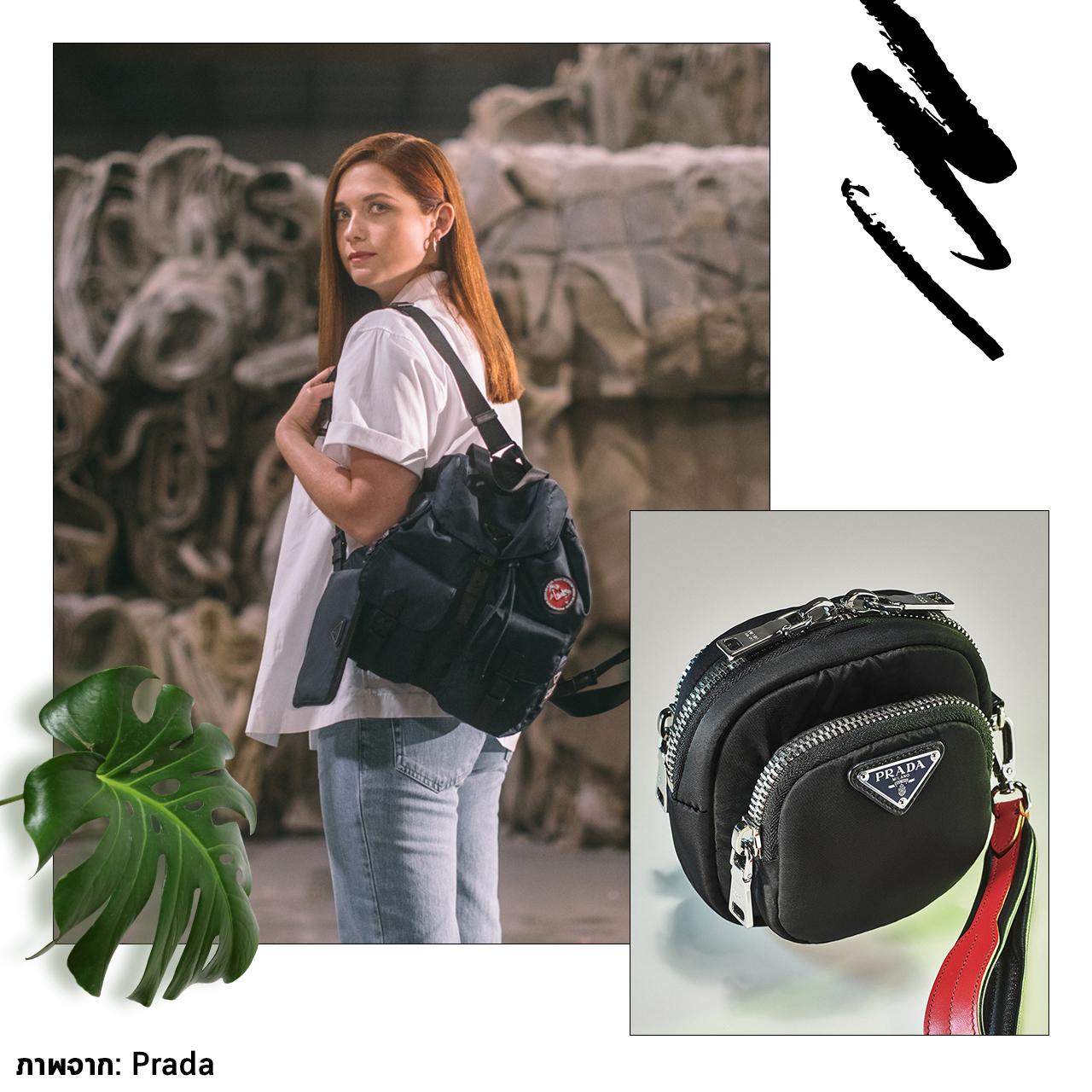 แบรนด์ดังสัญชาติอิตาลีขวัญใจของคุณผู้หญิงอย่าง PRADA หลังจากที่ได้ประกาศยกเลิกการใช้ขนสัตว์แท้ไป ถัดมาในเวลาอีกไม่นานก็เกิดโปรเจกต์รักษ์โลกชื่อว่า "Re-Nylon" ที่ร่วมกับ Aquafil ผุดกระเป๋าผ้าไนลอนที่ผลิตจากขยะรีไซเคิลขึ้น โดยการนำพลาสติกจากท้องทะเล และตาข่ายจับปลามาใช้เป็นส่วนประกอบของคอลเลกชั่นนี้แทนการใช้ไนลอนบริสุทธิ์ ซึ่งการเปลี่ยนแปลงในครั้งนี้ ก็เป็นอีกหนึ่งโปรเจกต์ที่สามารถช่วยโลกได้เป็นอย่างดีเลยทีเดียว ที่สำคัญยังคงความพรีเมี่ยม และภาพลักษณ์ที่ดูหรูหราไว้ได้เช่นเดิมอย่างแน่นอน