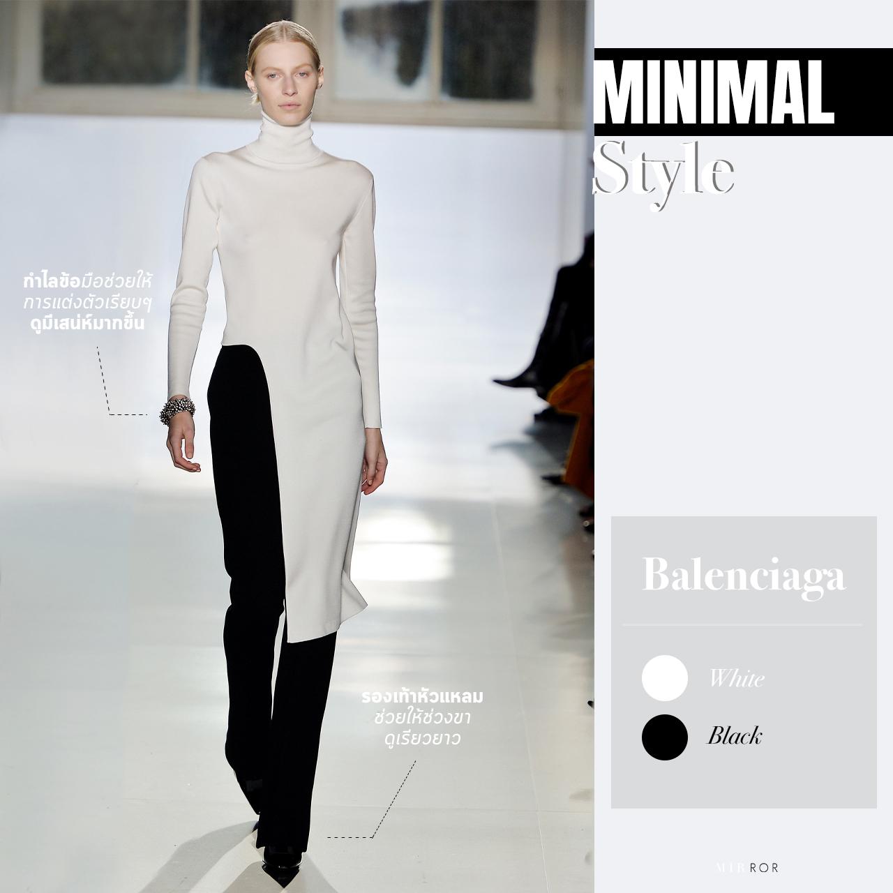 MIRROR picks : ลุคนี้เป็นการแต่งตัวที่ง่ายมากๆ แต่ Balenciaga เอามาเพิ่มลูกเล่นด้วยการทำเสื้อนิตติ้งแบบสั้นข้างยาวข้าง ทำให้ขาดูยาวขึ้น