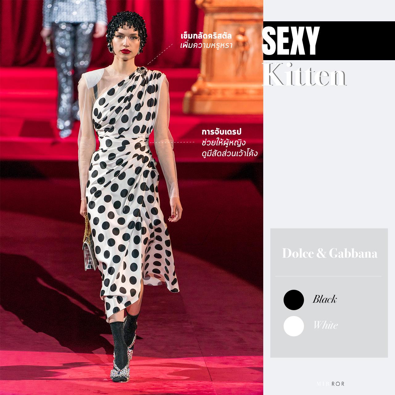 Look#4 : ชุดเดรสจับเดรปลายจุด จาก Dolce&Gabbana