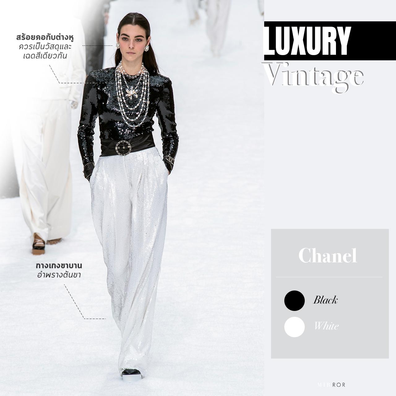 Look#2 : เสื้อและกางเกงปักดิ้น "โทนสีขาวดำ" จาก "Chanel"
