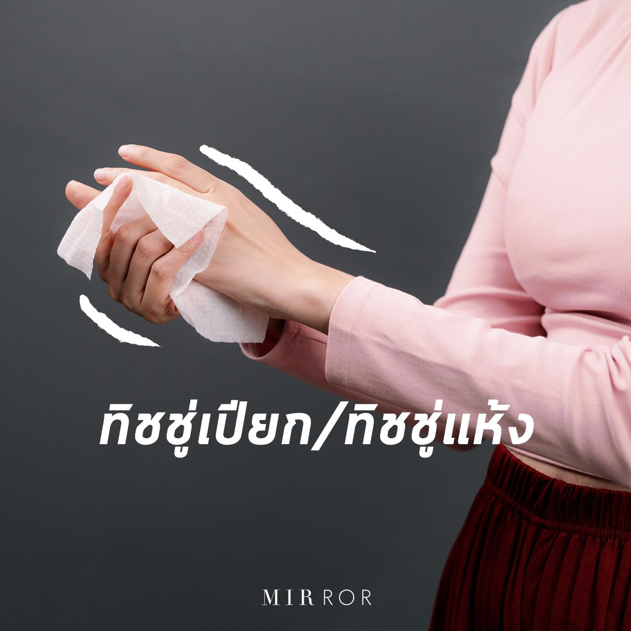 MIRROR Recommended : เพื่อการฆ่าเชื้อที่ดีควรเลือกทิชชูเปียกที่มีส่วนผสมของแอลกอฮอล์ แต่ถ้าเป็นในกรณีที่อยากจะใช้เพื่อเช็ดฆ่าเชื้อที่อาจจะติดอยู่ตามโทรศัพท์มือถือคงต้องพยายามเลือกที่ไม่มีแอลกอฮอล์ หรือน้ำเยอะจนเกินไปแทนค่ะ