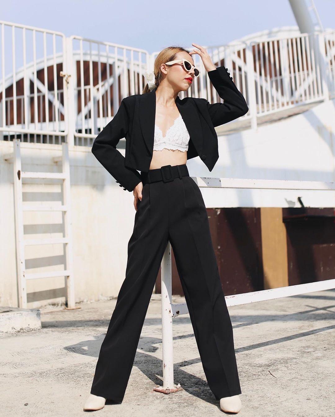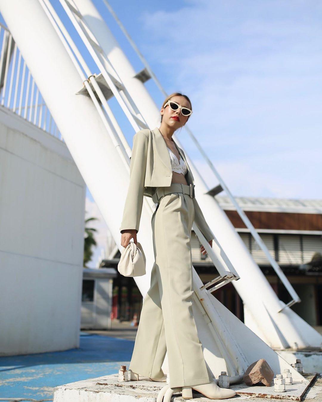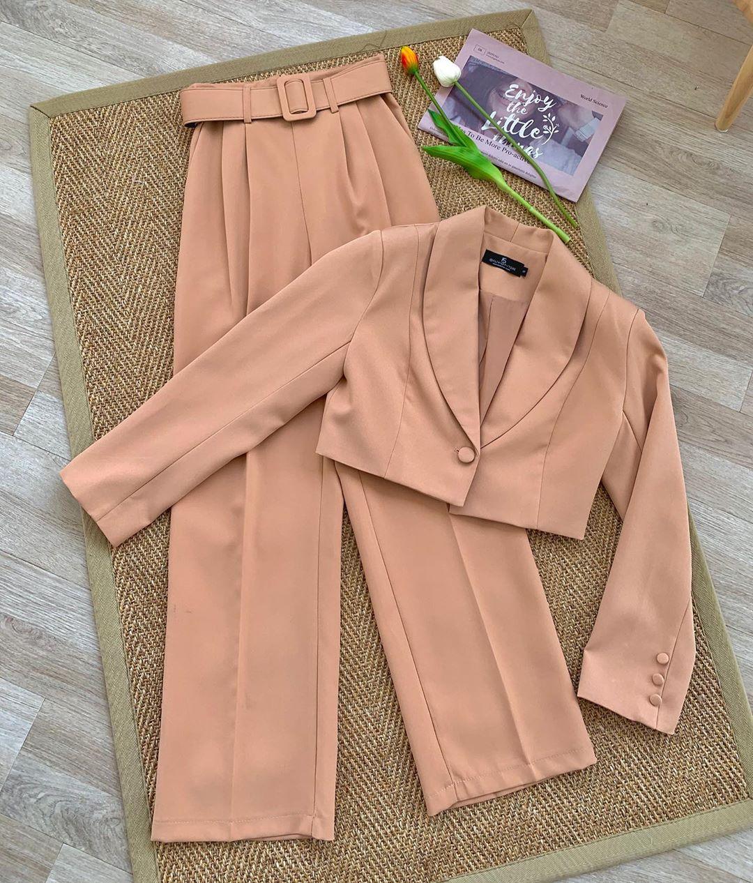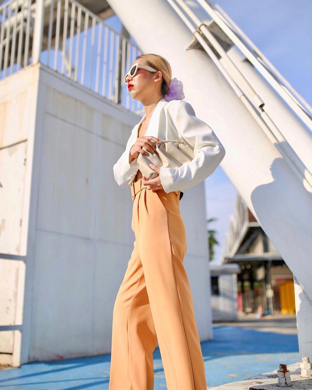 MIRROR Picks : ชุดสูทสี Salmon ที่มีดีไซน์เสื้อสูทแบบครอปเข้าชุดกับกางเกงขายาวทรงตรง + เข็มขัด ให้ลุคทางการที่ดูหวานละมุน น่าเข้าหา