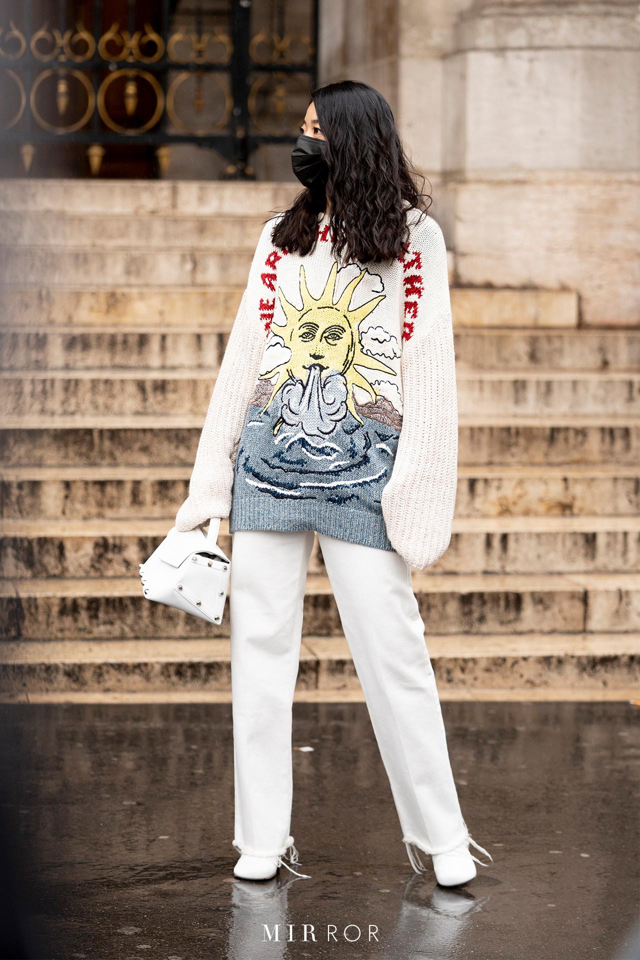 สีขาวคือความคลาสสิกไม่มีวันตายเสมอ และการสวมใส่เสื้อผ้าทรงโอเวอร์ไซส์สีเดียวกันทั้งลุค นอกจากจะเรียบง่าย ยังช่วยเพิ่มความน่าค้นหาให้กับผู้สวมใส่อีกด้วย ซึ่งมันตอบโจทย์เป็นอย่างมาก หากเช้าวันทำงานวันนี้ Lady MIRROR รู้สึกเบื่อหน่าย เร่งรีบ หรือขี้เกียจที่จะแต่งตัว