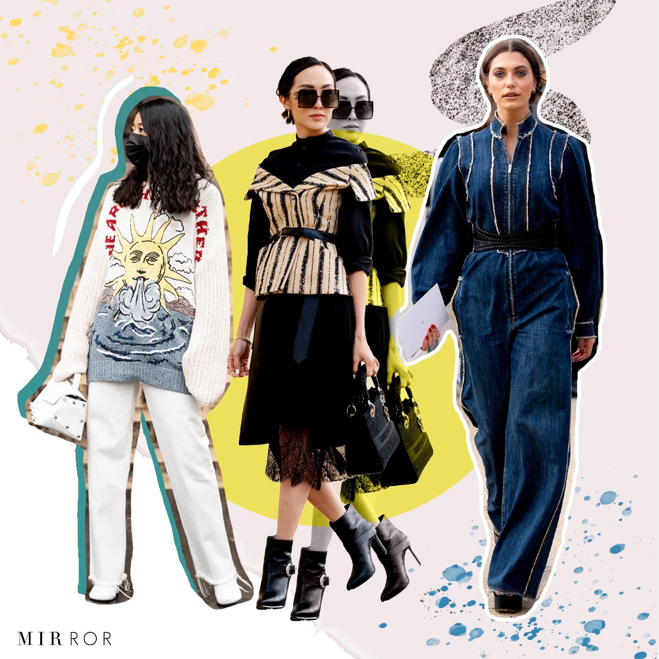ลุคนี้เป็นอีกหนึ่งไอเดียที่ MIRROR อยากจะนำเสนอมากๆ เพราะนอกจากจะแมตช์ง่าย ให้ความรู้สึกผ่อนคลาย เรายังเล่นสนุกกับเทรนด์ฮิตในช่วงนี้ได้อีกด้วย เพียง Lady MIRROR หยิบจับไอเทมลายพิมพ์เหล่านี้มาเล่นสนุกได้ง่ายๆ ด้วยการแมตช์กับเสื้อยืดสีพื้น คลุมทับด้วยเบลเซอร์เพื่อให้ลุคดูเป็นทางการมากขึ้น และปิดท้ายด้วยการเติมเครื่องประดับ และรองเท้าที่เข้าชุด ซึ่งการแต่งตัวสไตล์นี้มันจะกลายเป็นชุดทำงานในคาแรกเตอร์ใหม่ๆ ที่ไม่เหมือนคุณเพิ่งลุกขึ้นมาจากที่นอน