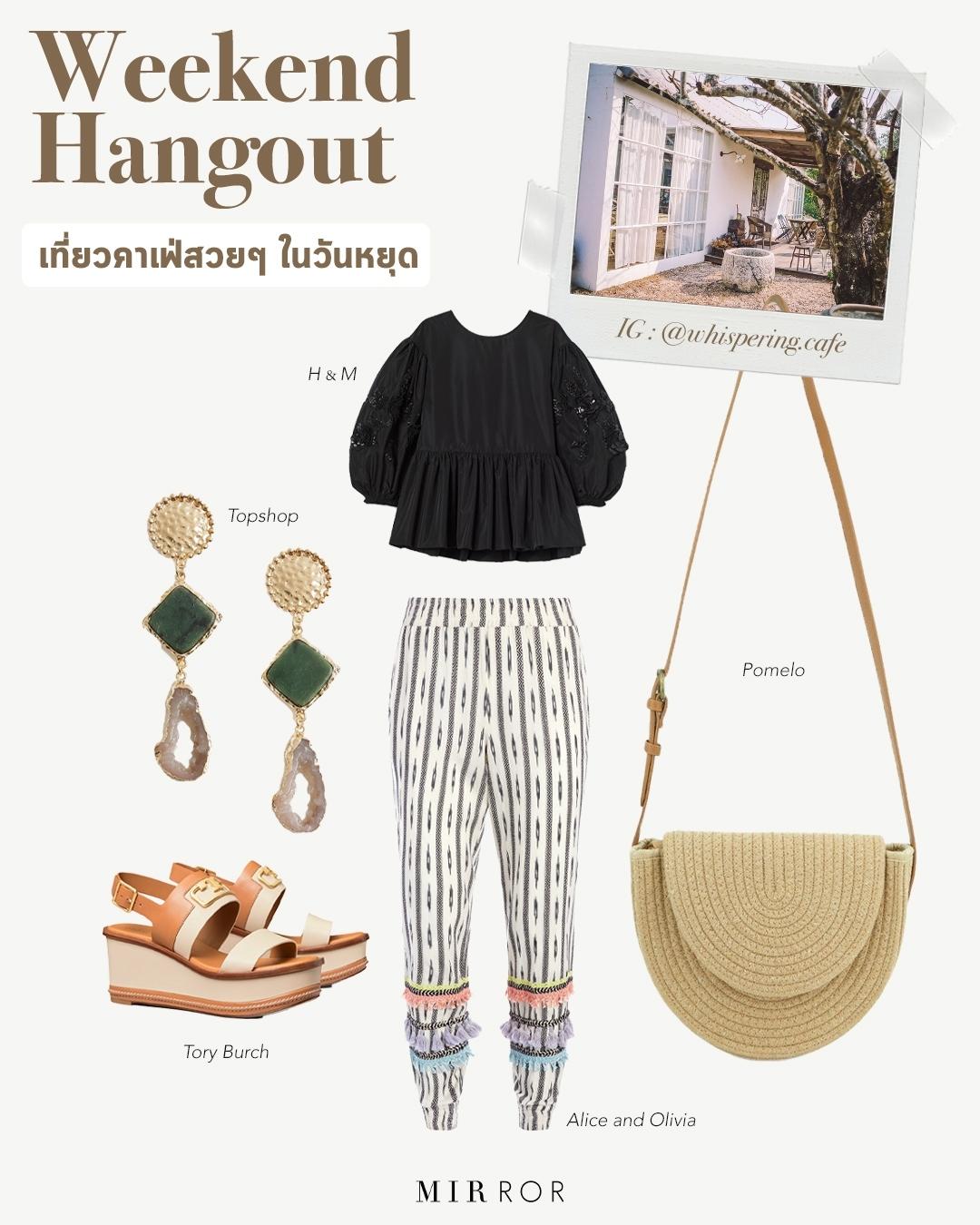 ใส่ไปไหน : จะนัดเดทหรือนัดเพื่อนไปกินกาแฟ ถ่ายรูปสวยๆ ช่วงวันหยุดไงก็ได้ ถ้าไม่อยากดูหวานจนเกินไปก็เปลี่ยนจากเดรสเป็นกางเกงพิมพ์ลายที่มีความเป็นชนเผ่านิดๆ ดูค่ะ เอามาแมตช์กับเสื้อยืดที่มีดีเทลหน่อยหรือใครมีเสื้อยืดธรรมดาๆ ก็เอามาแมตช์ได้นะคะ ลุคนี้ง่ายสุดๆ แค่เติมต่างหู สะพายกระเป๋า ก็สวยเก๋ พร้อมถ่ายรูปได้ทันที