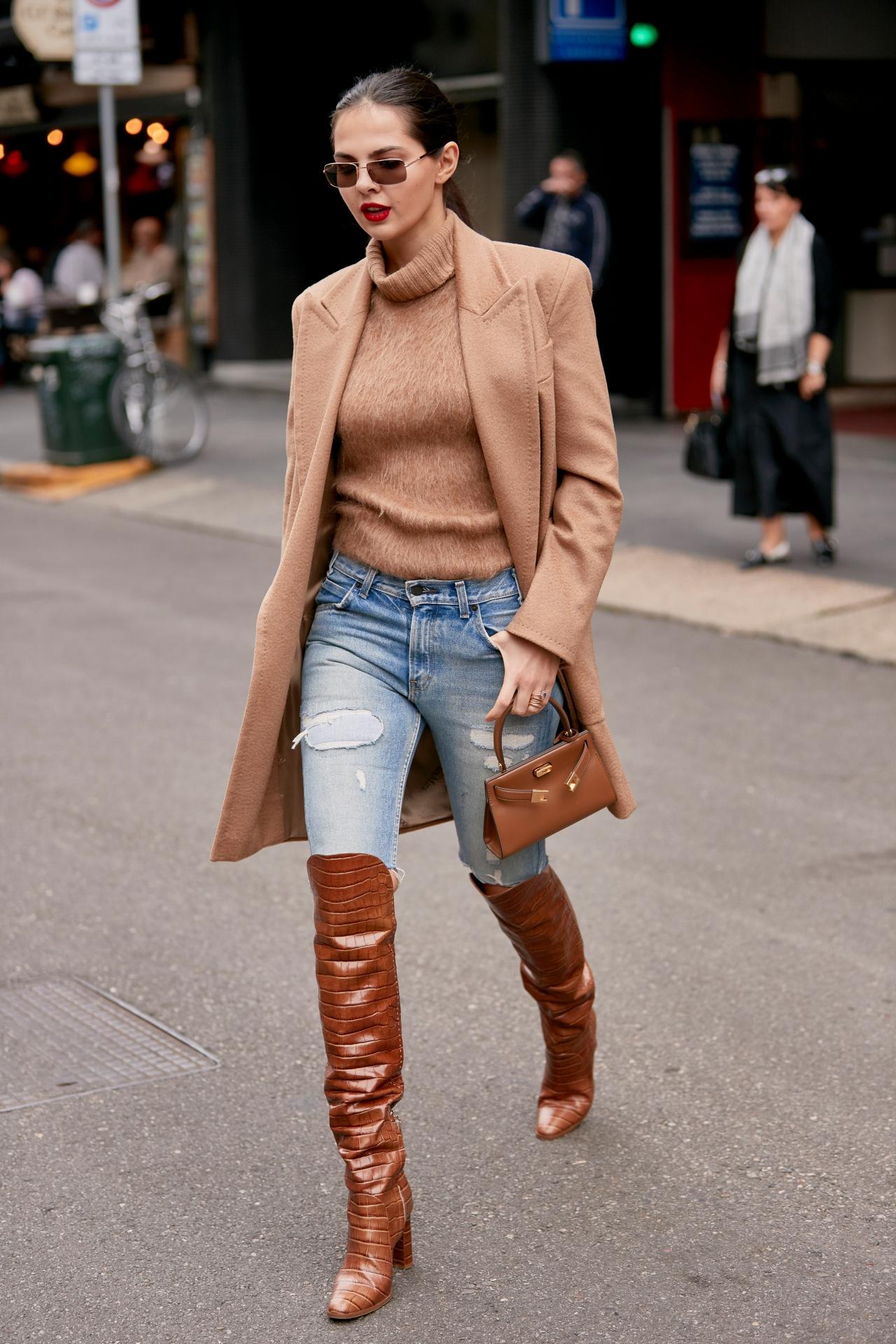 MIRROR Tips : กางเกงยีนส์ช่วยให้การแต่งตัวของคุณดูสวยคลาสสิกเสมอ ยิ่งนำมาแมตช์กับโทนสีน้ำตาลด้วยแล้ว ก็ยิ่งทำให้ลุคง่ายๆ ดูเรียบหรูมากยิ่งขึ้น MIRROR แนะนำให้คอมพลีตลุคด้วยรองเท้าบูตยาวและกระเป๋าถือใบจิ๋วตามภาพค่ะ ที่สำคัญอย่าลืมแว่นกันแดดทรงวินเทจ เพิ่มความชิคด้วยนะ รับรองว่าการแต่งตัวของคุณจะเท่และดูสนุกขึ้นอีกเท่าตัว