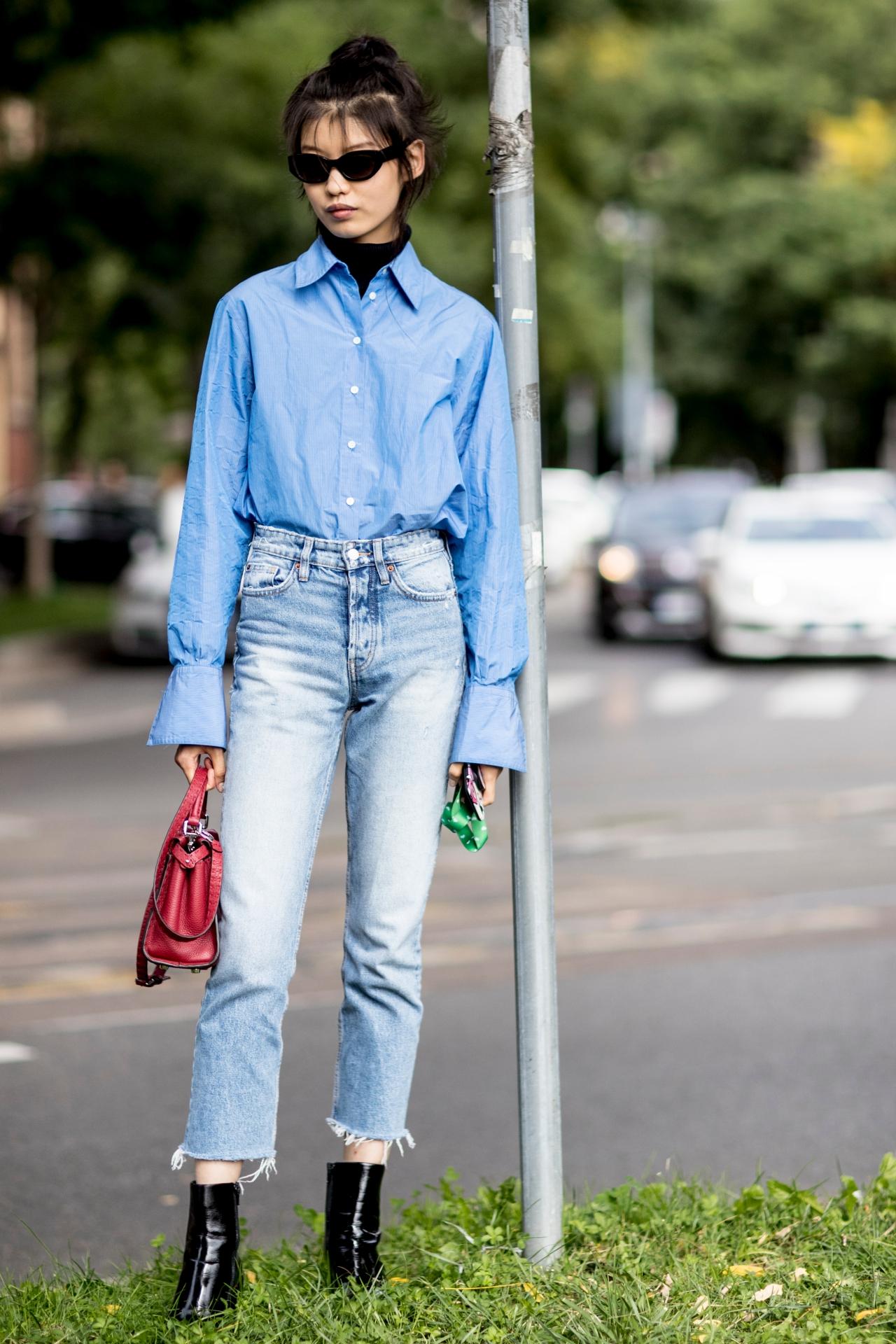 MIRROR Tips : เสื้อเชิ้ตสีฟ้า แมตช์เข้ากับกางเกงยีนส์สุดคลาสสิก แต่งตัวคุมโทนด้วยลุคสาวออฟฟิศ ลองเติมรองเท้าบูตสีดำเข้าไปดูสิคะ จะดูเป็นสาวมั่นที่พกพาความชิคมาเต็มพิกัดขึ้นมาทันที