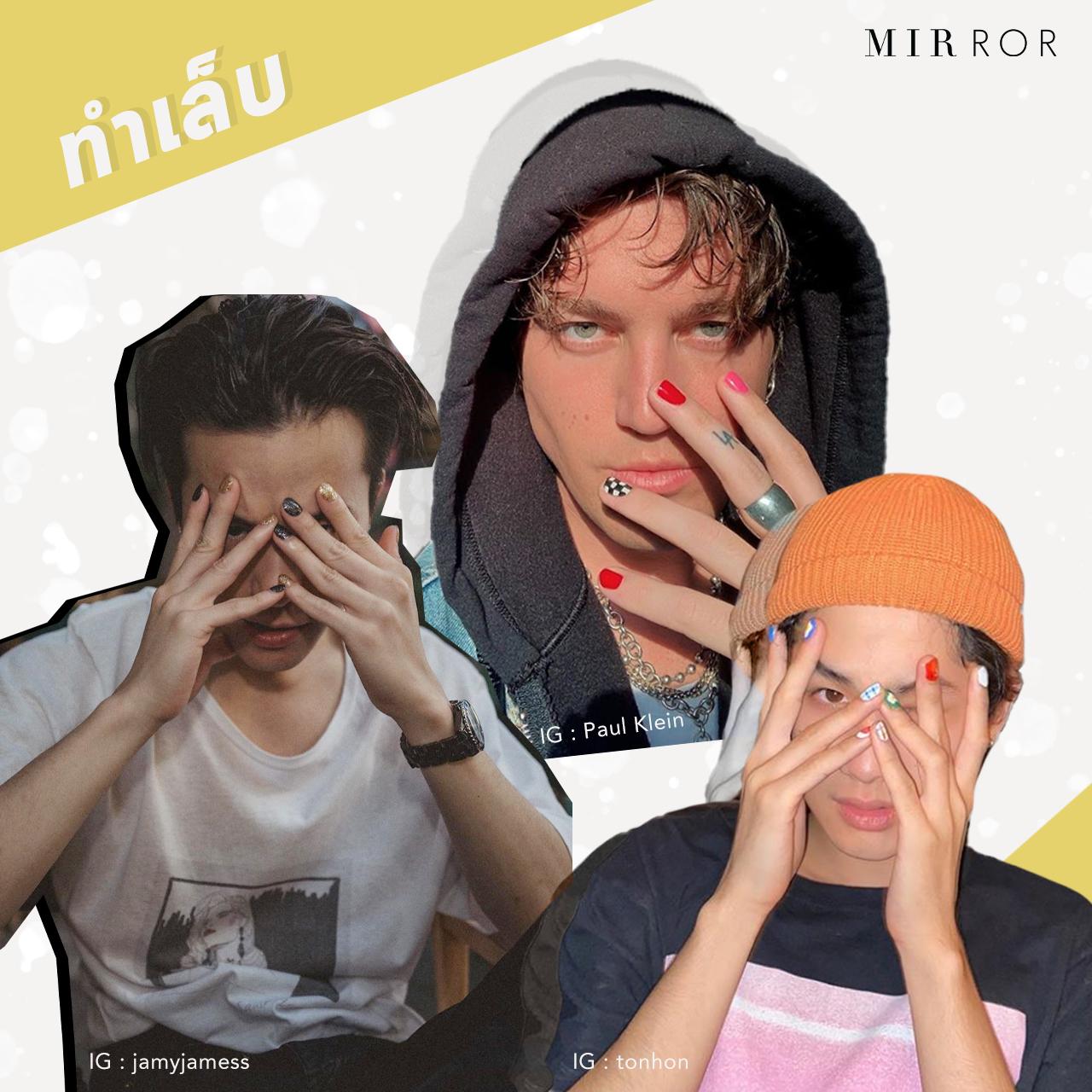 ตั้งแต่ต้นปีจนถึงตอนนี้การทาเล็บ หรือเพ้นท์ลวดลายต่างๆ ลงบนเล็บมือ ไม่ได้เป็นงานศิลปะที่นิยมเฉพาะผู้หญิงอีกต่อไปแล้วค่ะ เพราะกลุ่มเซเลบริตี้ผู้ชายทางฝั่งตะวันตกส่วนมาก เช่น นักร้องดังอย่าง Paul Klein และ Harry Style และอื่นๆ ก็ต่างพากันครีเอตและอวดความครีเอทีฟงานศิลปะบนเล็บมือผ่านโซเชียลกันจนเป็นเรื่องปกติ ใช่ค่ะ...กระแสนี้ส่งผลมาถึงกลุ่มดาราผู้ชายไทยไปถึงกลุ่มวัยรุ่นทั่วไปด้วยเช่นกัน