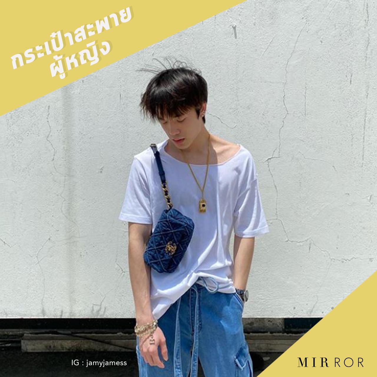 เป็นนักแสดงและนักร้องชายไทยที่มักจะหยิบเสื้อผ้าหรือไอเทมต่างๆ ของผู้หญิงมาเป็นส่วนหนึ่งของการแต่งตัวเสมอ ซึ่งการหยิบกระเป๋าผู้หญิงมาใช้นั้นไม่ได้มีเพียงเจมมี่เจมส์เท่านั้นหรอกนะคะ แต่เซเลบริตี้เมืองนอกเขาก็ทำกัน ซึ่งตรงนี้ MIRROR คิดว่ามันคือเรื่องของความชอบและรสนิยมส่วนบุคคลค่ะ