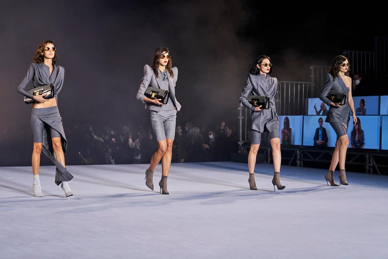 อีกหนึ่งลักชัวรี่แบรนด์สัญชาติฝรั่งเศส ที่สร้างความน่าตื่นตาตื่นใจไม่แพ้แบรนด์อื่นๆ เราขอยกให้กับ Balmain ค่ะ เพราะแฟชั่นวีคคราวนี้ดีไซเนอร์อย่าง Olivier Rousteing เลือกจัดแฟชั่นโชว์แบบ Virtual Runway ด้วยการแบ่งครึ่งหนึ่งของรันเวย์เป็นคนจริงและอีกครึ่งเป็นการฉายภาพผู้ชมผ่านจอพรีเซ็นเทชั่นขณะโชว์ แม้ดูเหมือนเป็นบรรยากาศที่ไม่ค่อยจะคุ้นชินของเหล่านางแบบ และผู้ร่วมชมโชว์สักเท่าไร แต่ก็ถือเป็นอีกหนึ่งการนำเสนอรูปแบบใหม่ที่น่าสนใจเลยทีเดียวค่ะ อีกทั้งเสื้อผ้าในคอลเลกชั่นยังเต็มไปด้วยความเป็นยุค 70-80 ตาม DNA ของแบรนด์อีกด้วย โดยเฉพาะดีไซน์เสริมไหล่ที่โดดเด่นมากๆ