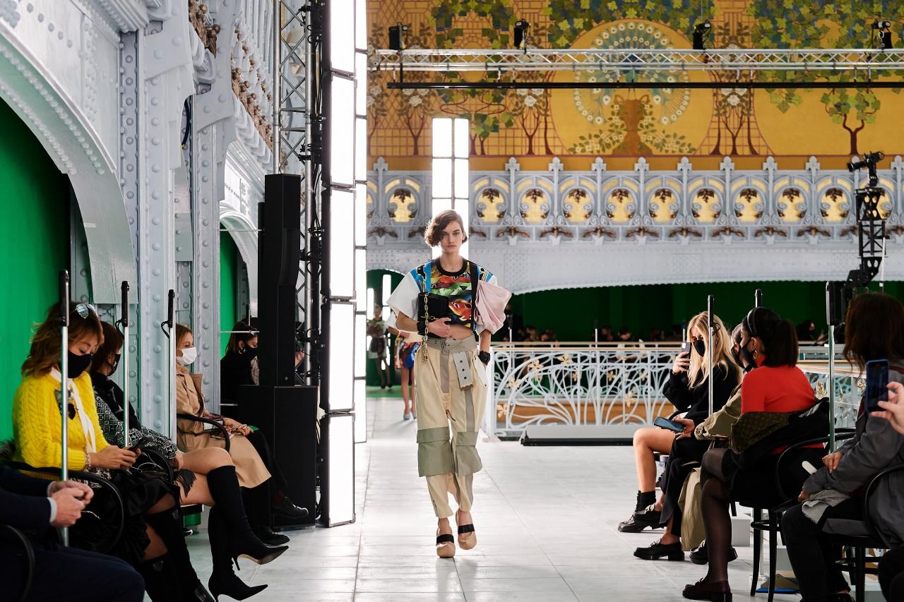 ความอลังการสุดยิ่งใหญ่ไม่เสียชื่อ Louis Vuitton ที่ในปีนี้ได้ใช้ Green Screen ขึงรอบ La Samaritaine เพื่อฉายภาพยนตร์เรื่อง Wings of Desire ระหว่างโชว์ ทำให้แฟนๆ ที่ดูจากทางออนไลน์ได้สัมผัสประสบการณ์เดียวกับสื่อ และเซเลบริตี้ที่อยู่ในงานด้วยกล้องที่หมุน 360 องศา และเทคโนโลยีต่างๆ ที่นำมาใช้เพื่อให้ได้ประสบการณ์สมจริง ที่สำคัญเสื้อผ้าในคอลเลกชั่นนี้ นิโคลาส เกสกิเยร์ ครีเอทีฟไดเร็คเตอร์ ตั้งใจจะให้เป็นเสื้อผ้าที่แสดงถึงความเป็นหนึ่งเดียวของเพศสภาพที่ไม่มีการแบ่งเสื้อผ้าผู้หญิง-ผู้ชาย ถือเป็นอีกหนึ่งมิติใหม่ที่ล้ำหน้าไปไกลมากๆ สำหรับ Louis Vuitton