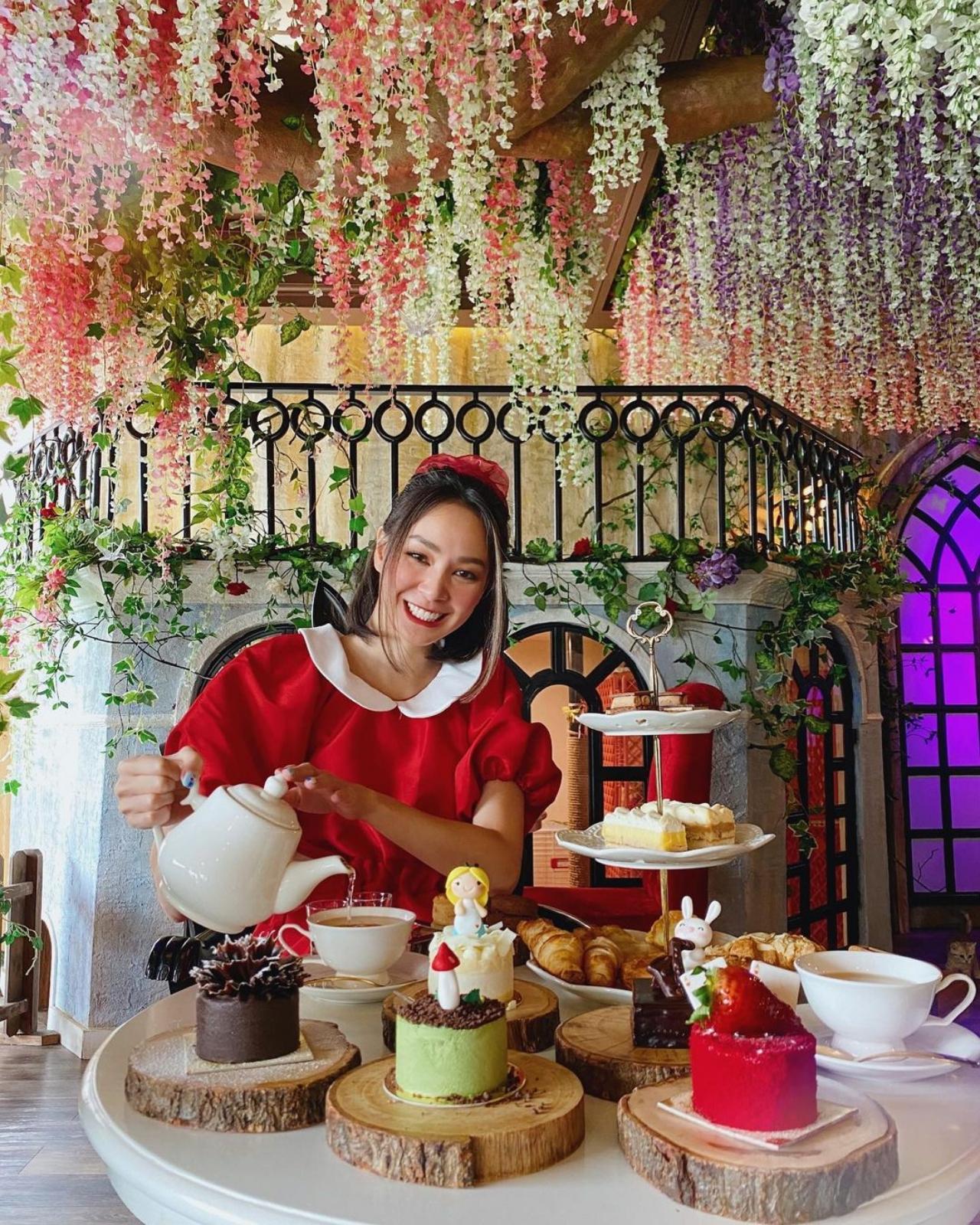 ไม่ต้องเผลอแล้วค่ะ ถ้าอาหารและบรรยากาศร้านมันดูเพอร์เฟกต์ เราก็ถ่ายให้เห็นอาหารบนโต๊ะไปเลยให้รู้แล้วรู้รอด ซึ่งท่าโพสเป็นการนั่ง เราแนะนำให้หาเบาะเสริมมารองเก้าอี้ หรือนั่งทับขาข้างใดข้างหนึ่งเพื่อดันให้ตัวเองสูงขึ้น มิเช่นนั้นอาหารบนโต๊ะจะบัง และทำให้เราดูกลืนไปกับขนมตรงหน้าได้ค่ะ