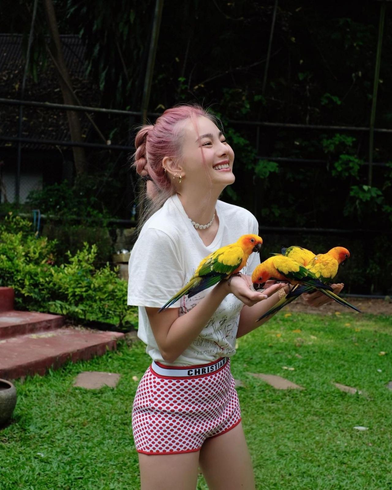 ไม่ว่าจะเป็นท่าโพสไหน หากมีสัตว์ เช่น น้องหมา น้องแมว หรือเจ้านกอยู่ในภาพด้วย คุณจะดูเป็นผู้หญิงที่น่าทะนุถนอม และละมุนขึ้นมาทันที ไม่เชื่อลองดูได้เลย ขอรีแอคแบบยิ้มสดใสๆ ด้วยนะคะ
