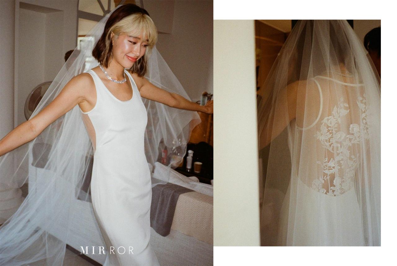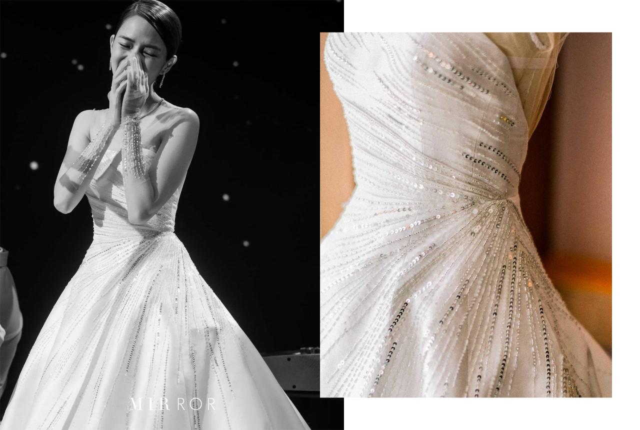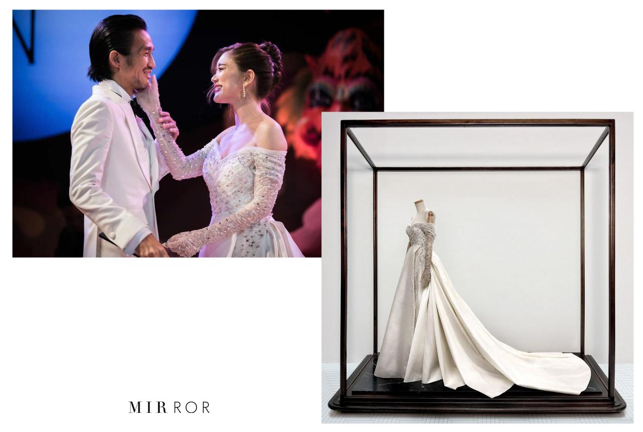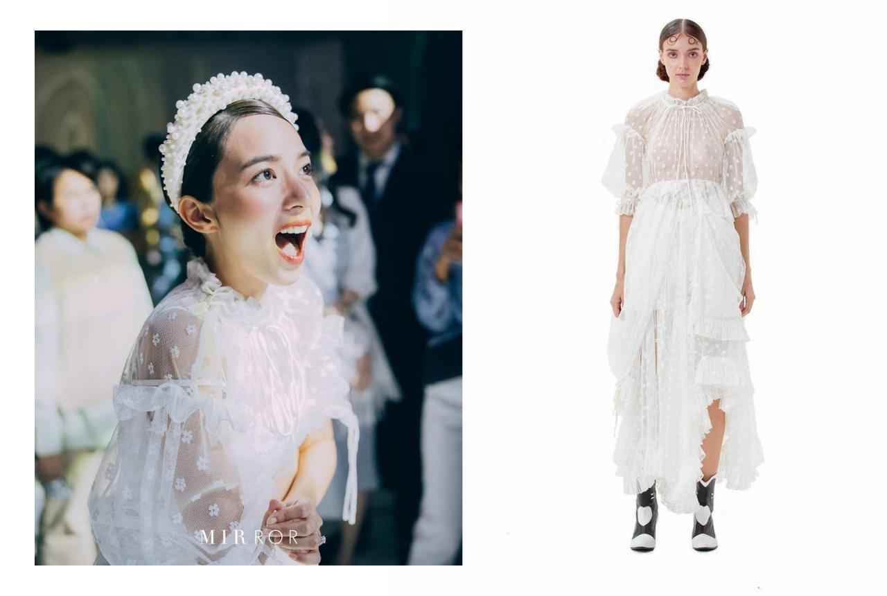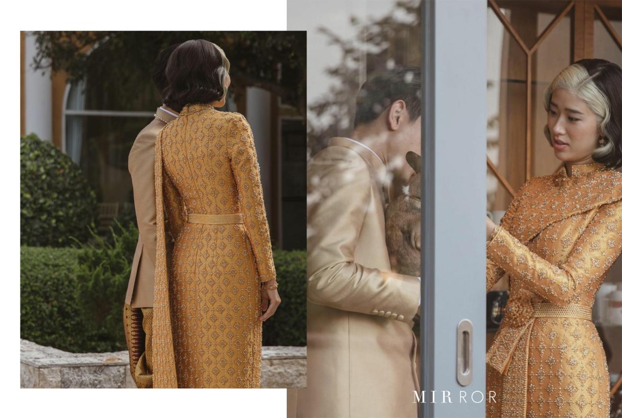 ก่อนที่จะกลับมาสวมใส่ชุดจากแบรนด์ Meshmuseum อีกครั้งหนึ่ง ในช่วงพิธีฉลองมงคลสมรสในช่วงกลางคืน