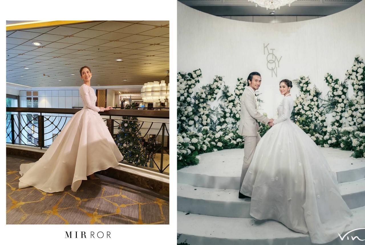 การได้สวมใส่ชุดเจ้าสาว นับว่าเป็นอีกหนึ่งความฝันของผู้หญิงส่วนมาก และเมื่อวันสำคัญนี้มาถึง บรรดาเจ้าสาวจึงมักจะใส่ใจกับการเลือกชุดแต่งงานเป็นพิเศษ ซึ่งช่วงปลายปีนี้ก็มีเหล่าคนดังเข้าประตูวิวาห์สละโสดกันไปหลายคู่ แถมชุดที่ใส่นั้นยังสวยงามมากๆ อีกด้วย MIRROR จึงอยากพาเพื่อนๆ มาดูเบื้องหลังความงดงามนี้กันสักหน่อย ว่าชุดเจ้าสาวที่สวยๆ ที่คนดังสวมใส่กันอยู่นั้นมาจากแบรนด์ไหนกันบ้าง แต่ที่แน่ๆ ดีไซเนอร์ไทยฝีมือดีกันทุกคนจริงๆ ค่ะ